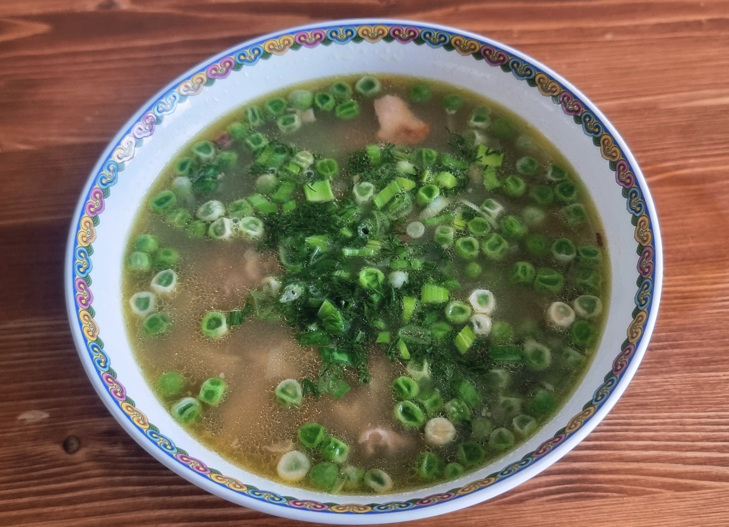 Суп гороховый. По рецепту идёт желтый колотый и зелёный мороженный. Без картофеля, на копчёной курице.