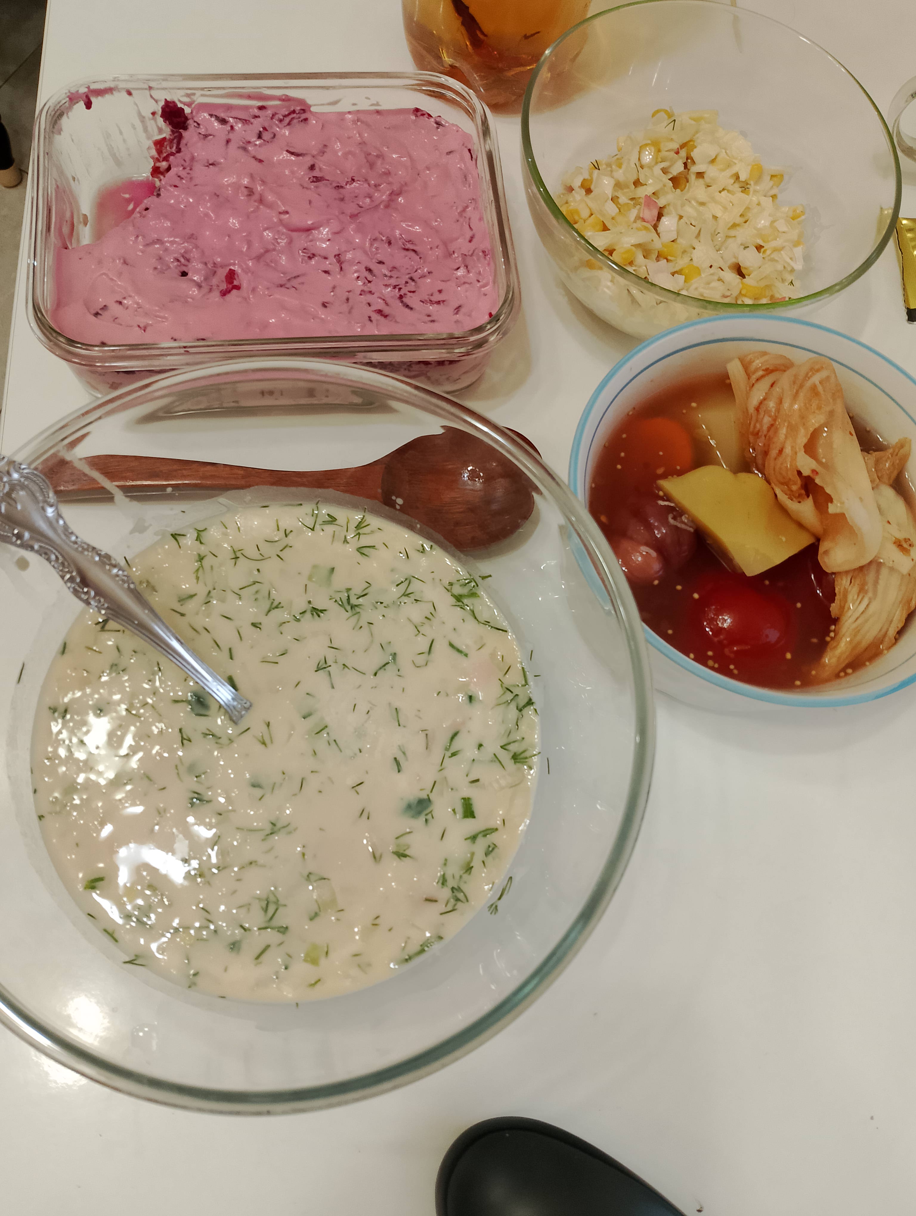 >>763905 >>763905 Редьку ( у меня розовая) хочешь пореще , тогда,можно черную или магеланскую, трешь на самой мелкой терке, огурец тоже трешь, яйцо вареное кубиком, докторская колбаса кубиком, зелень укроп, заливаешь квасом, у меня домашний, можешь купить какой нравится, соль , сахар по вкусу под себя настраивать, сметана.