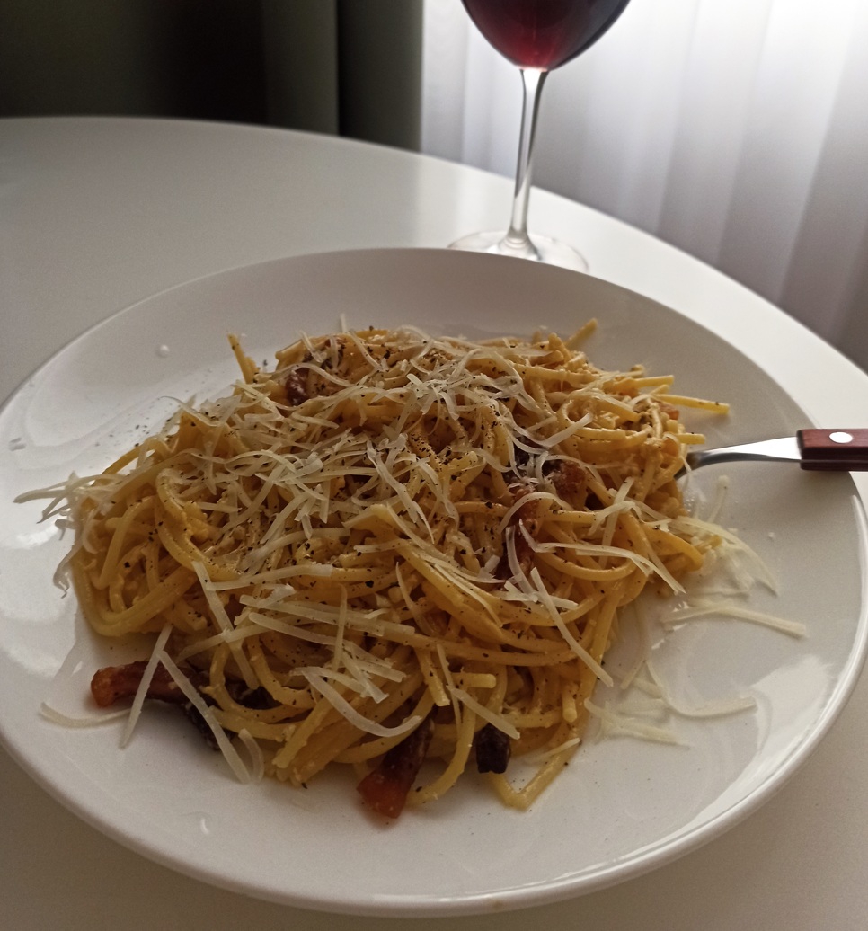 Единственное с чем я всегда буду спорить, это сухость блюда. Дэгустэбус нон дыстпутантэ конечно, но я готовлю такую пасту без ВАТТА ВОТАР потому что мне такая нравится. Мне просто приятно запить вином, смешать в соусе.