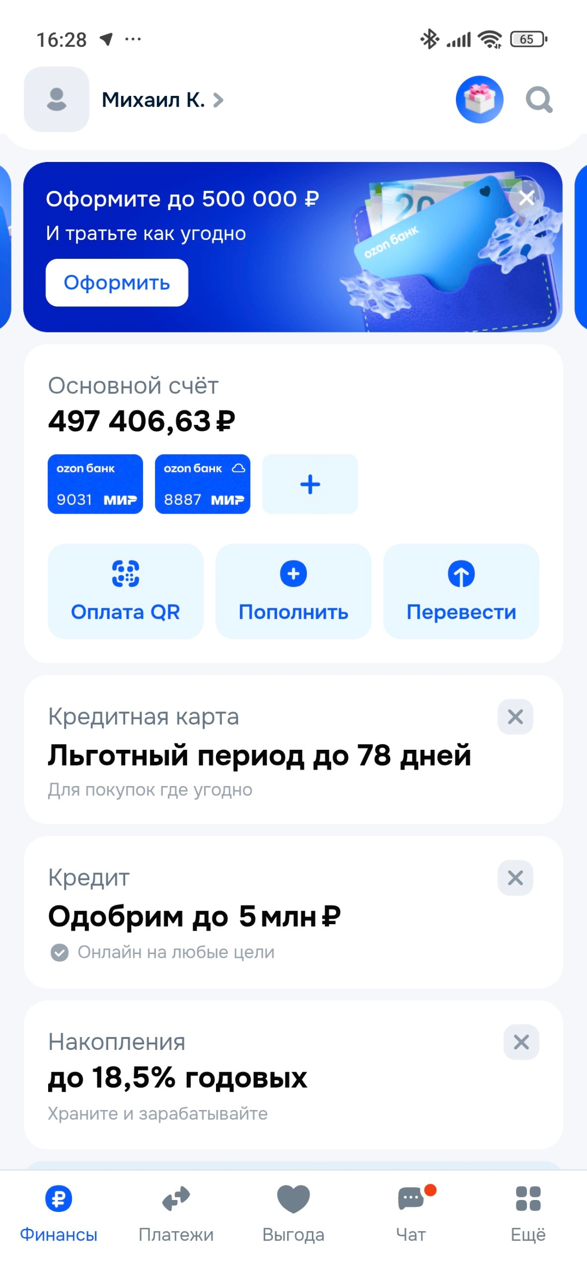 >>764088 > пик Не понял, у тебя реально 500к лежит просто на озон карте, даже не на накопительном счете? Ещё поди и платишь сразу с нее, а не покупаешь сертификаты с кэшбеком? Что за расточительность?