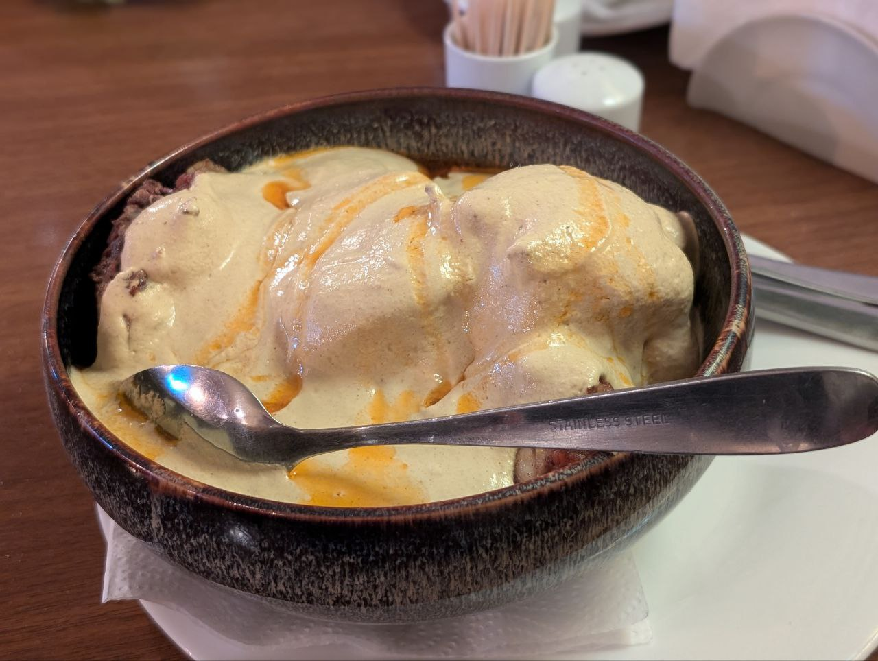 >>763810 В этот раз решил поебаться по-настоящему и сделал сациви как у грузинов на ютубе, прокручивал орехи через мясорубку и отжимал с них масло. Желтые капельки сверху это ореховое масло со специями а не то что вы подумали В прошлый раз просто блендером молол. Через мясорубку текстура получше, конечно. Отжим масла реальный заеб. Причем грузины на ютубе просто мнут ореховую массу руками и она начинает давать масло спустя какое-то время, у меня так не получилось, только через марлю смог немного масла нацедить. С текстурой опять не угадал, слишком густо, надо меньше орехов или больше бульона. Но по вкусу очень вкусно