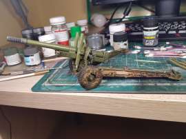 Внезапно у меня засвербило и я за 15 минут собрал купленный ещё летом ишак. Само собой следы от питателей и щели ещё будут шпаклеваться. А вообще реквестируб схему окраски интересную, однотонный зелёный мне не очень, хочу либо камуфляж, либоо машину с парада. Если что это тип 10.