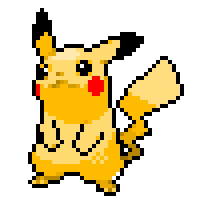 >пикачу На мой взгляд сложноват для начала, попробуй что нибудь проще как по форме так и по цветам. Можешь даже своего персонажа придумать, благо пиксель-арт - довольно простая хуйня.