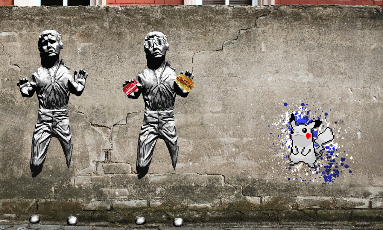 >>201073 >второй пик Не катит. Тема очень заезженая и не интересная. Любой стрит-арт художник начинает с подобных якобы полезных посылов но на самом деле он ясен всем и каждому только всем поебать. Лучше сразу целься на что нибудь актуальное, злободневное и не толсти, пытайся тоньше преподнести идею.