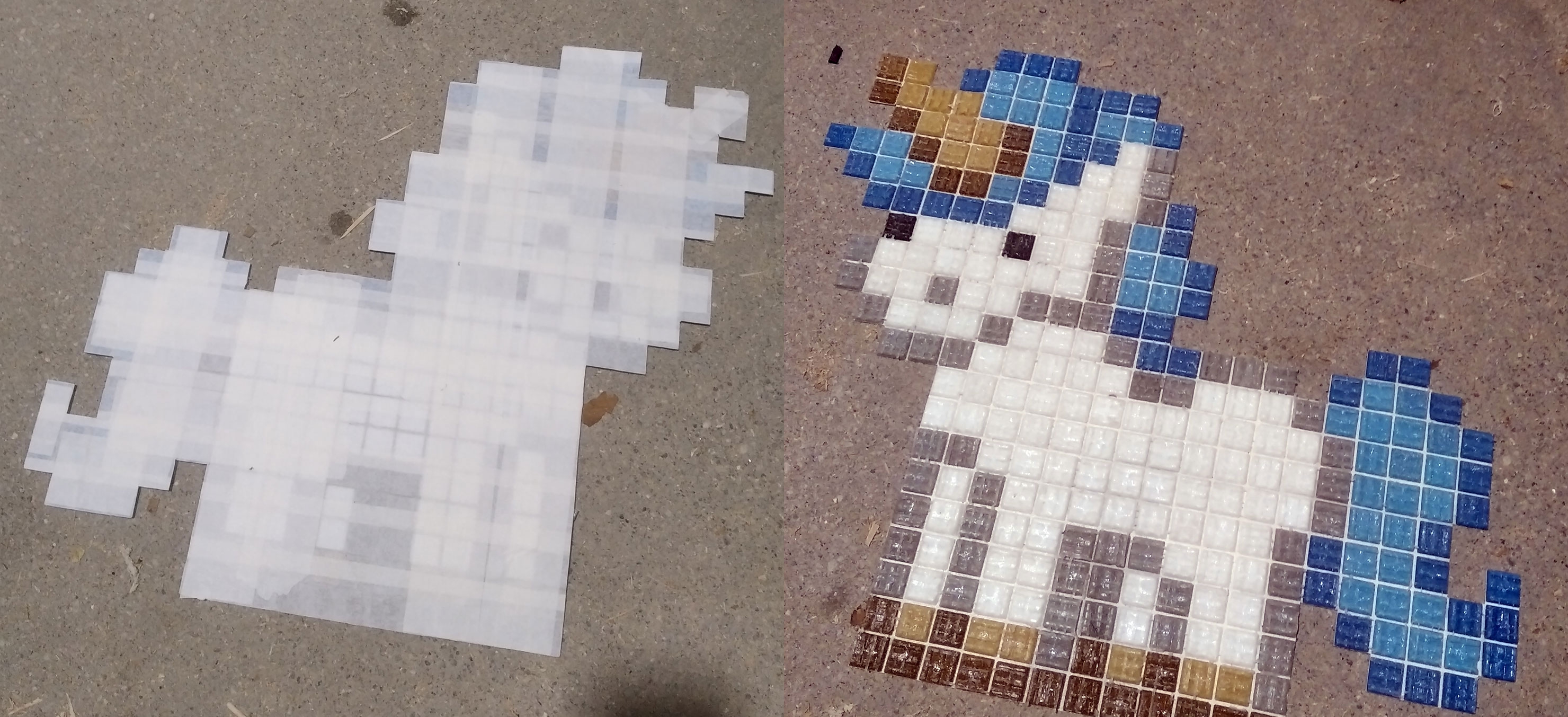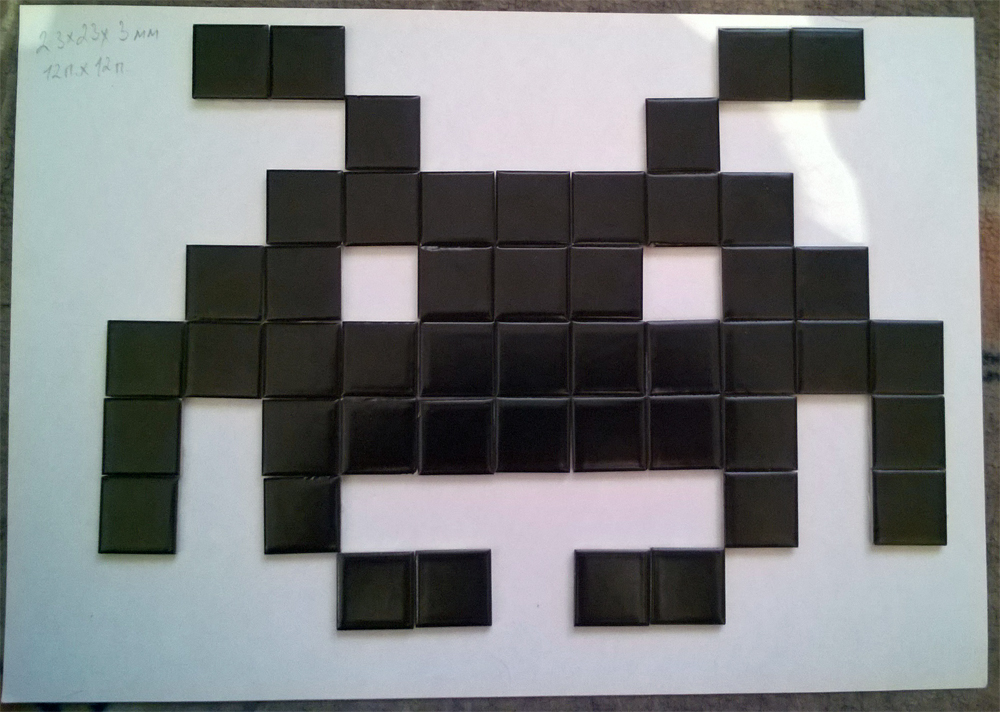 Про мазайку: допустим, я найду мазайку, покрашу, а вот как дальше их скрепить между собой? Посмотрел "Выход через сувенирную лавку", там space invader клеил их на какую-то каучуковую основу, а затем на жидкие гвозди садил и на стену, вроде как. Но в наших суровых реалиях это может отпасть, тут морозы до -50, а разводить состав цементный на месте не комильфо же.