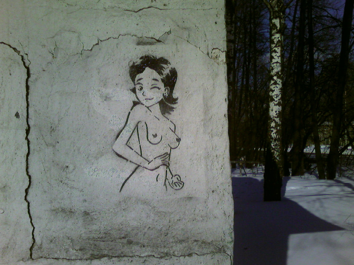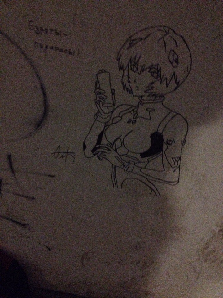 >>400481 У нас в городе кстати много таких "особенных". Из нового недавно второй пик зафигачил в городе, но краска подвела, да и я криворукий, так что пока не буду дальше стены портить, поучусь рисовать пока.