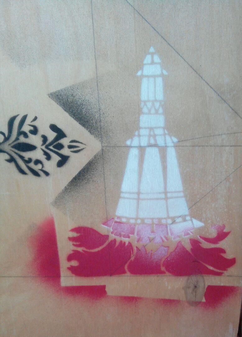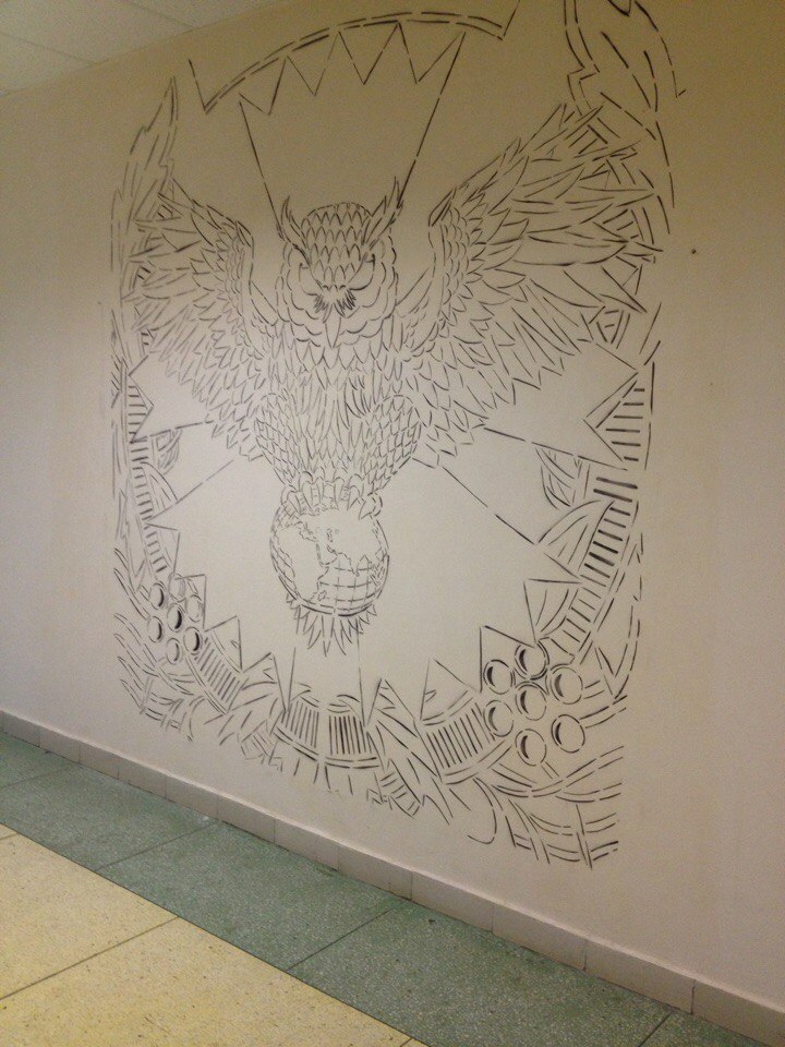 >>373774 Пилил все баллончиками. Черным залил кусок стены. После по наброску на а4 маркером делал отметки. Клеил по метка малярный скотч и по нему уже закрашивал. На все ушло часа 3.