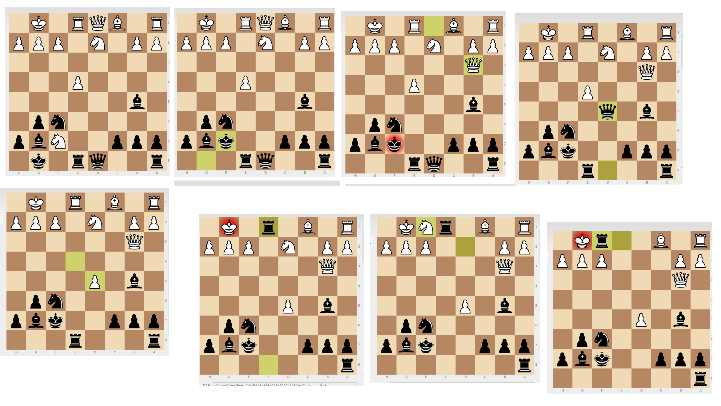 >>501221 Расскажи как рассчитывать варианты. По какой схеме, как запоминать. Например, выбор хода, коррелируется с оценкой позиции, оки. Я оценил позицию, выбрал пару ходов. Начал создавать дерево расчета. И тут проблема, запоминать варианты в расчетах. Интересует именно техническая сторона вопроса. Как запоминать. Проговаривать, например с2 с4 и тд и тп? И еще, пожалуй самое главное. Как в воображении передвгиать фигуры? Ты же смотришь на доску, и фигур находятся в статике. Думаю в целом реквест ясен. Ну вот например, у меня проблема, я немогу видеть промежуточные позиции, забываю, где-то мб на 7-8 ходе. Думаю у всех такие же проблемы. Тактику решаю, хуи сосу, бочку делаю.