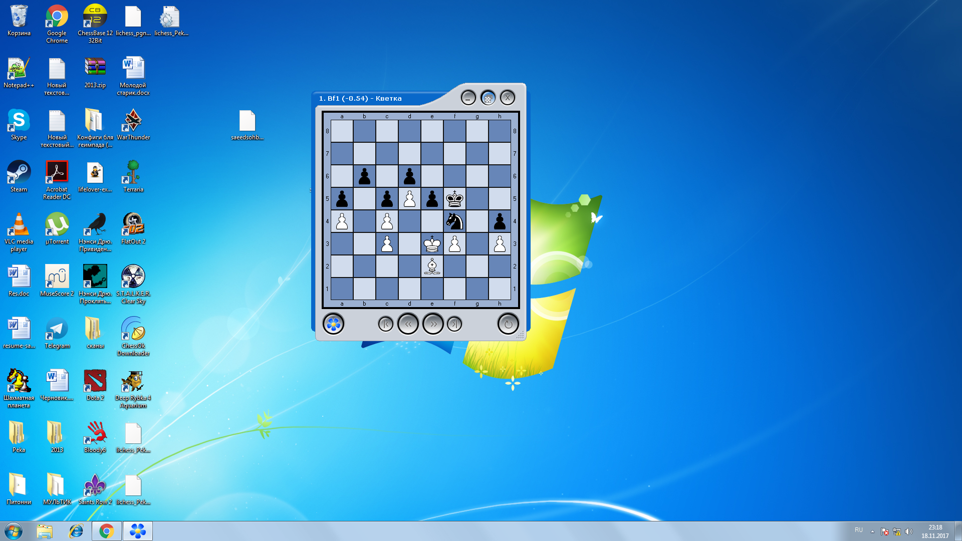 >>432407 Думаю, что хорошо, но не с кем играть и негде. А научиться можно только практикой - чем больше играешь, тем лучше это делаешь, все эти разбирания этюдов мне кажутся слишком скучными и бесполезными, надо своё мышление развивать, а не за чужим наблюдать со стороны.