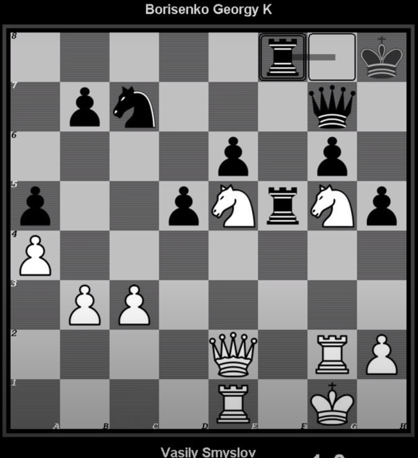 на пикрле окончание гроссмейстерской партии. ход белых. черные сдались после последнего своего хода (Лf8) . Какое продолжение выиграшное для белых? не вижу хелп