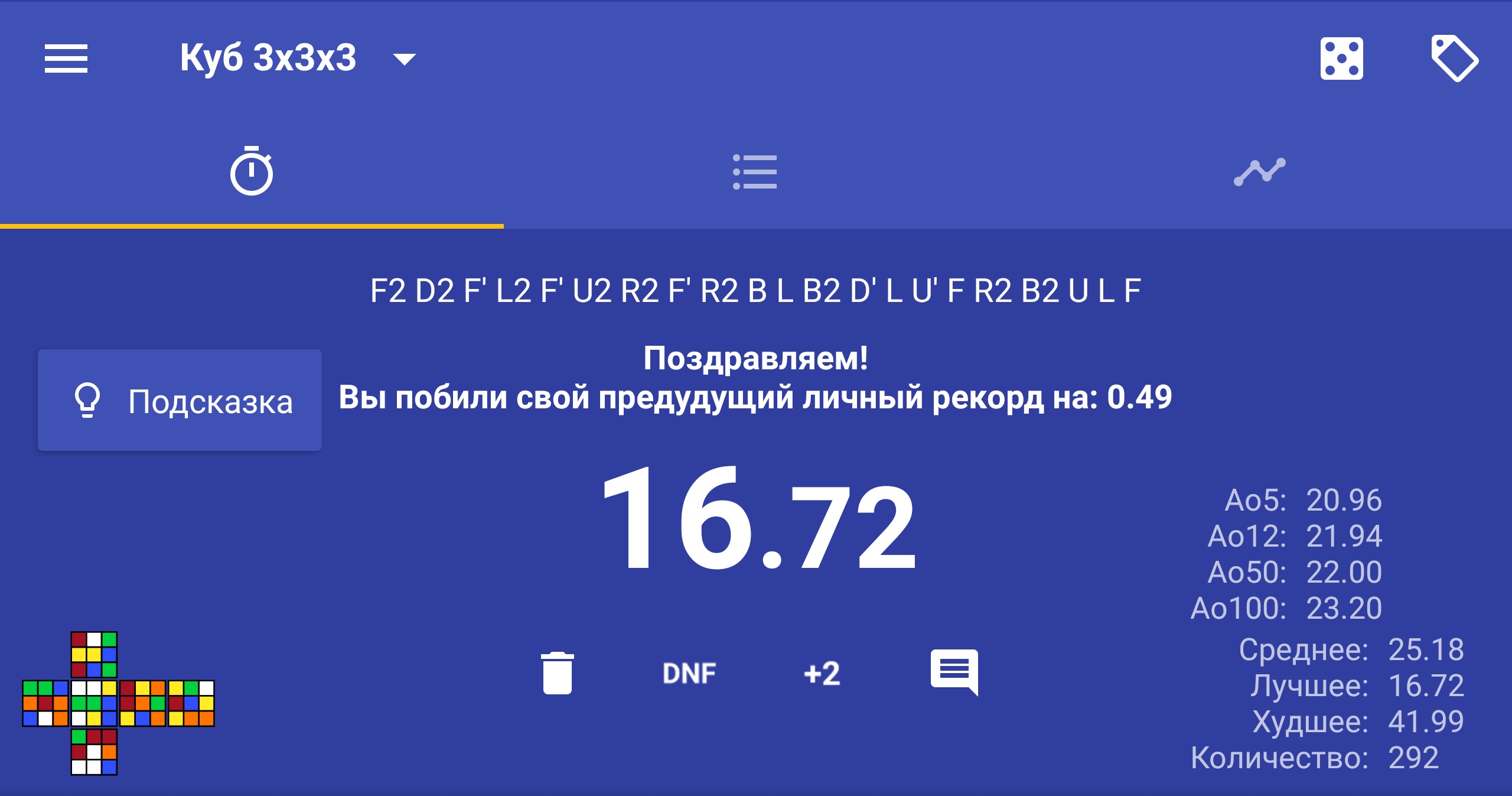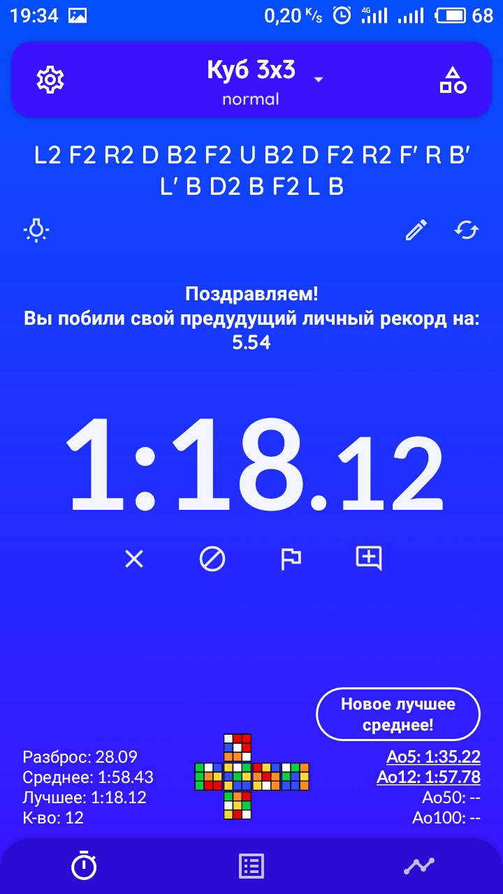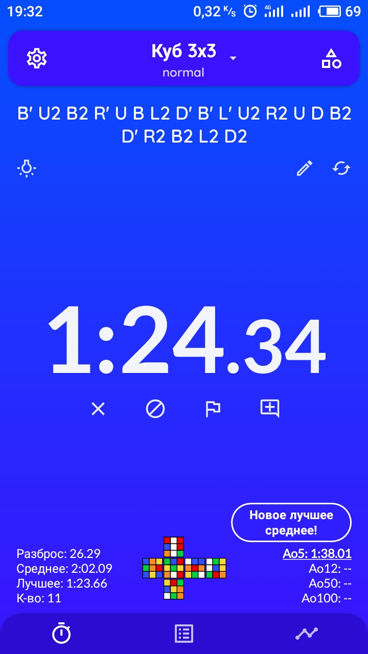 Последнюю неделю почти не практиковался в сборке. Пытался научиться собирать нижний крест минут по двадцать в день. Ничему особо не научился кроме запоминания цветов. Планирую научиться собирать крест из неправильных позиций с последующим поворотом дауна для корректировки. Хотя это все равно уровень червя пидора потому что крест собирают вместе с уголками