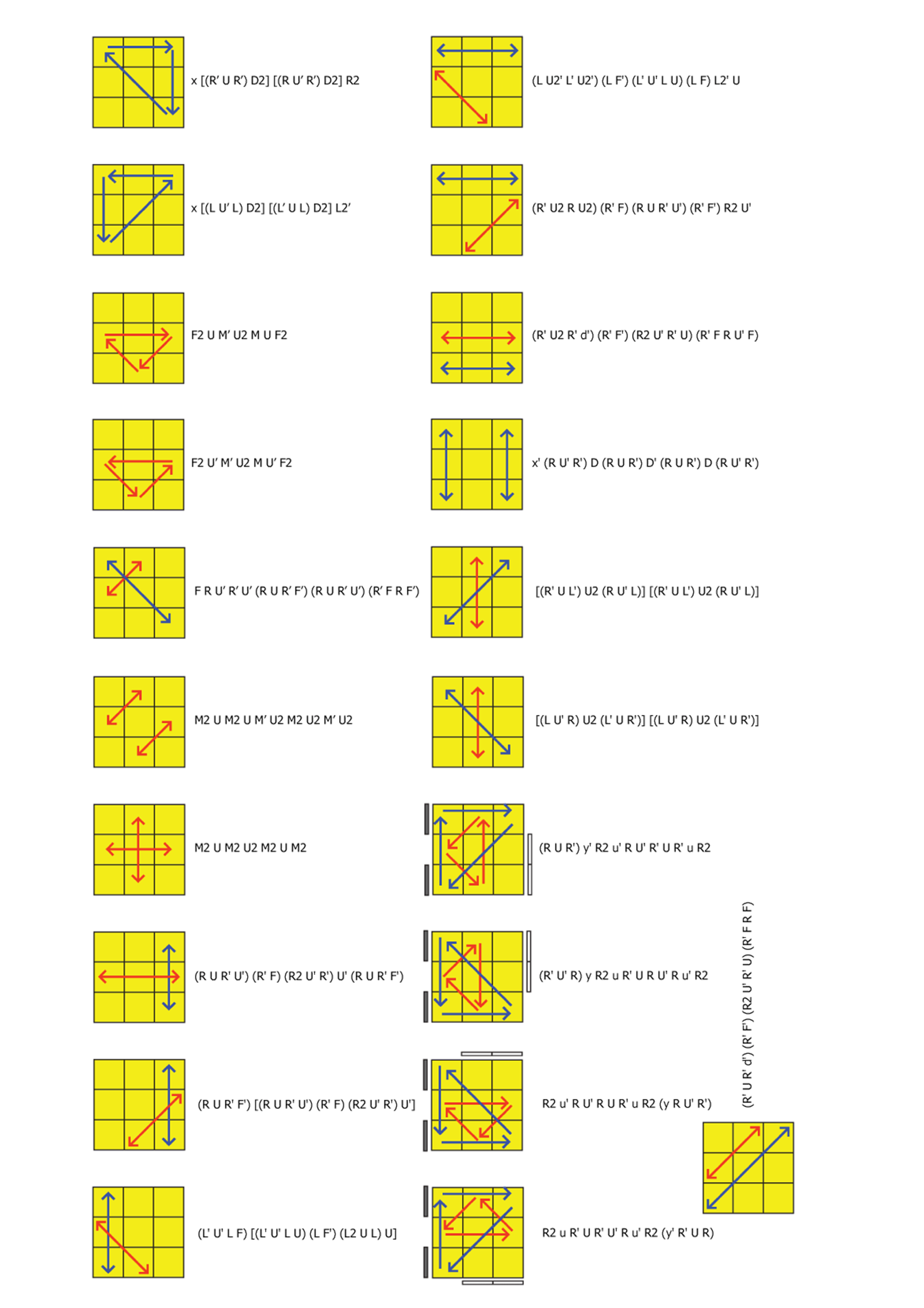 Просто кину на здоровье куберам, которые блуждают по огромным количеством сайтов в поисках лучших алгоритмов, чат, на котором есть многое что бы вы хотели найти. Только там старый язык вращения, но он не сложный. Если что маленкие буквы это нужно крутить двойной слой. То есть r=RW. Сайт: http://algdb.net/