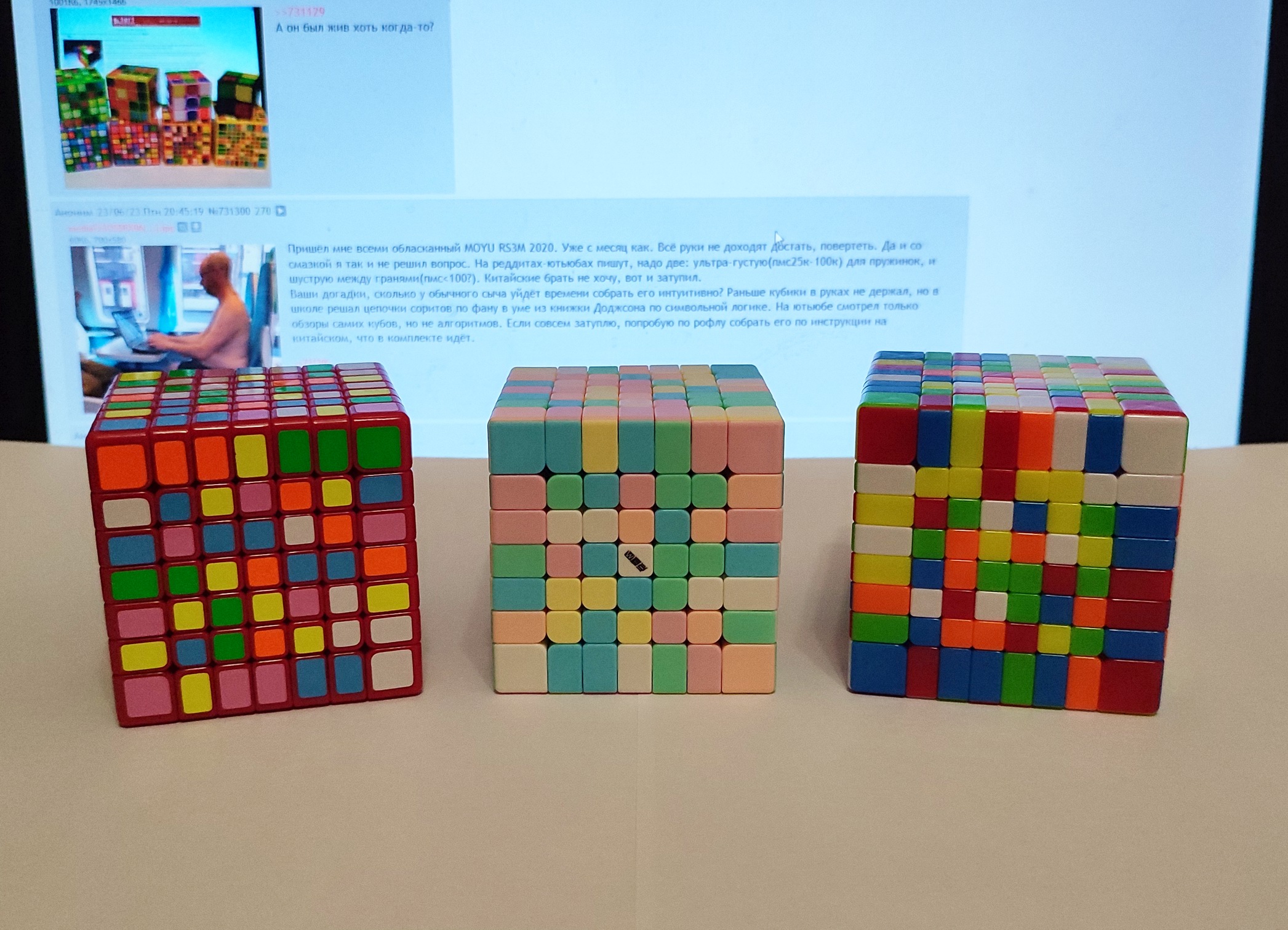 >В обзорах к названию иногда ещё добавляют v2. Ага, потому что сначала Qiyi выпустили 8x8-11x11 размером как у Мейлонгов, где-то в районе 2020-2022. Они так себе. К тому же, как любые бюджетки от Qiyi, они были сделаны из всратых цветов пластика. Это было выпущено как прямая конкуренция тем самым первым дешевым биг-кубам типа Мейлонга.