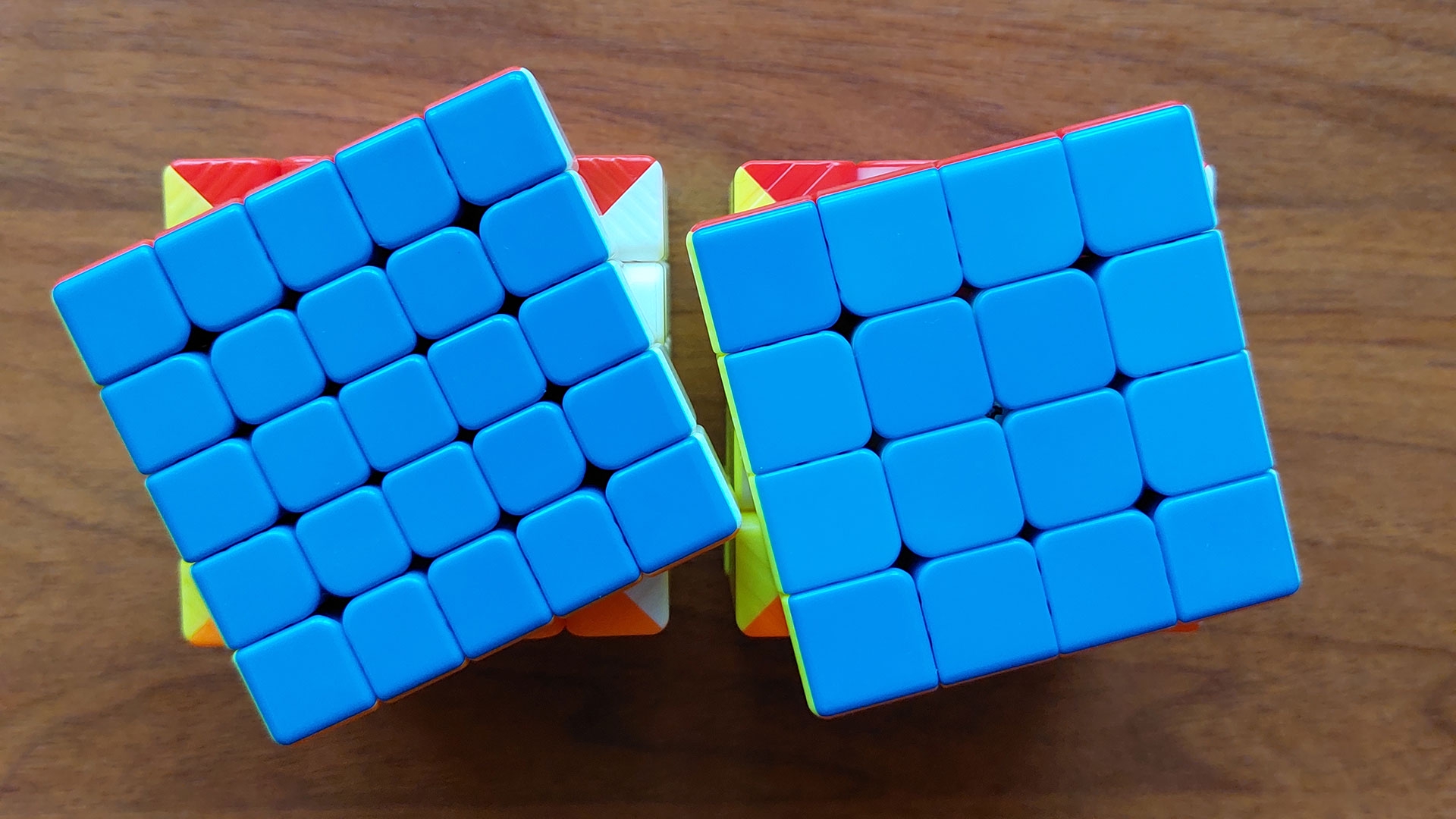 Пару дней назад получил пятерку YJ 5x5 ZhiLong M Mini. По обзорам мне казалось, что эти жилонги круче, чем QiYi M Pro, но при прямом сравнении пятерка жилонг ощущается более дешевой. У четверки пластик хоть и гладкий, но все же слегка матовый, пятерка полностью блестящая, грани более скругленные, в итоге сразу ассоциации с какими-то детскими погремушками. У четверки лого напечатано на самом кубике, в пятерке была просто тонкая наклейка с отслаивающимися краями, выглядело это так убого, что я сразу ее оторвал.