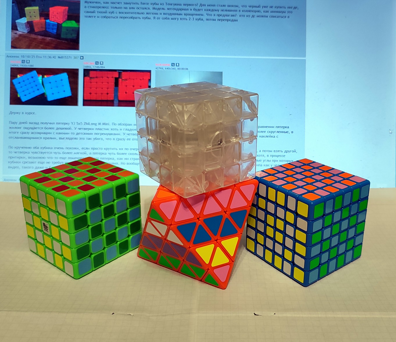 Все головоломки фирмы QiYi, кроме мелкого куба, он от Cyclone Boys