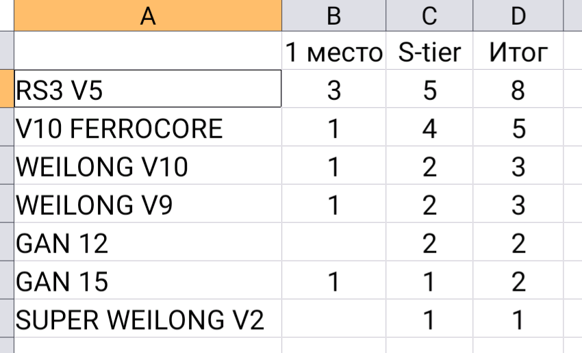 После достижения результата меньше 20 сек и освоения Фридриха рекомендую с варриора/гуанлонга и прочих бюджетных кубов переходить на кубы средне-топового сегмента (от 600 до 900 рублей) например QiYi Thunderclap v2, MoYu Aolong и т.д