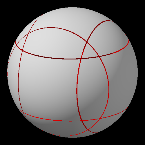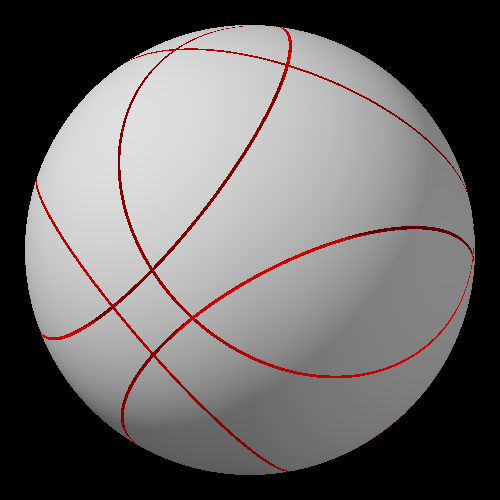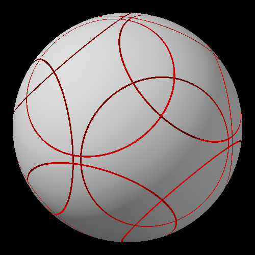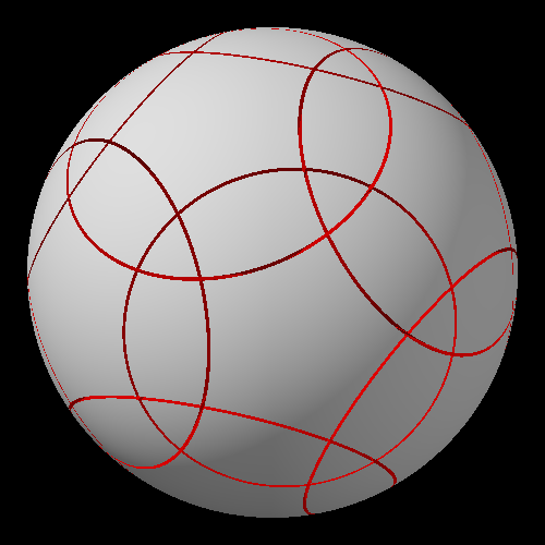 А вот пик 3 - это оси ромбододекаэдра. Тут как раз то, о чем я написал простыню выше. Делаешь поворот, чтобы ребро совпало с местом ближайшего соседнего ребра - во-первых, получается поворот на иррациональный угол, а во-вторых, результат будет выглядеть не как исходная позиция, а по-другому, ну там угол (где пересекаются три разреза) уедет к полюсу, где близко подходят друг к другу 4 разреза, и т.д. Анимацию мне запилить нечем. Но на этой картинке должно быть более-менее понятно.