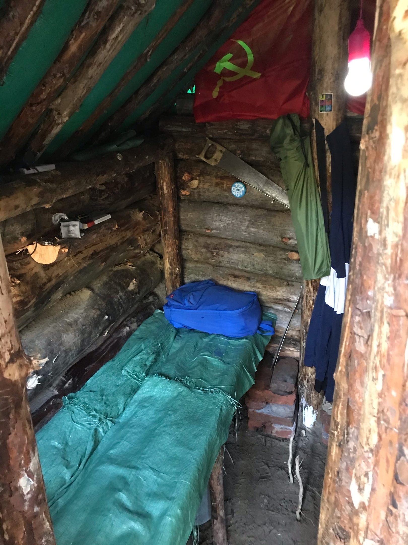 Удивительно как она ещë стоит. Крышу доделать не хочешь? Тогда простоит намного дольше. И замок повесь, а то место ты выбрал видимо максимально неудачное. 10 км от посёлка это очень мало. Минимум на 40км нужно было уходить, да так чтобы заебисто было добираться мимокроку. А то я смотрю у тебя там то тянки какие-то пришли, до печь разъебали, то зеркало сломали, проволоку спиздили. Местное быдло уже приметило твою халупу, это очень плохо. В чужих зимовьях и землянках обычно не принято поднасирать, а тебе только и делают, что гадят. Будет время и силы, пиздуй искать другое место, а то это не дело. Заночуешь однажды, тебя там и порешают и похоронят нахуй в этой землянке.