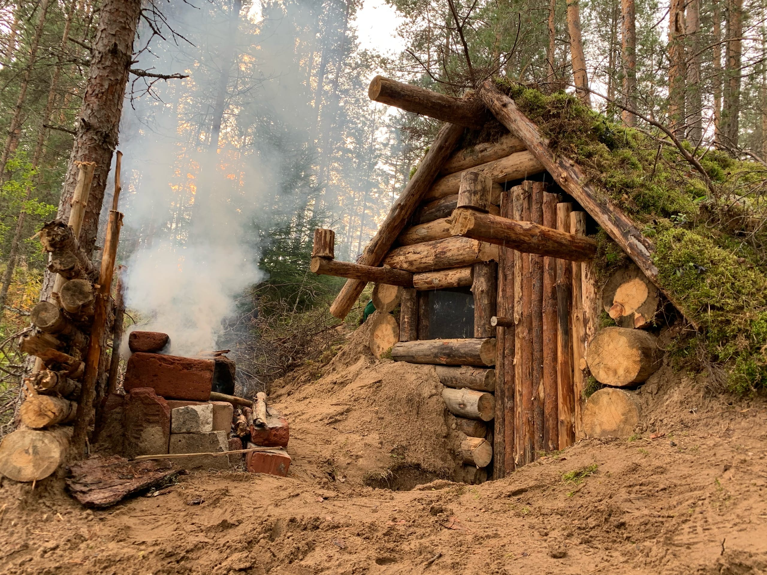 Так, че там с земляночных фронтов, какие новости? Как утепление хижыны, мха в дыры. Не, вообще в такой землянке думаю и зиму реально пережить, если печку чпокнуть внутри, дыр не будет, сверху еще ветвей да земли накидать плотнячком, снегом присыпить, сказка. Единственное источник тепла, идеально печь, чтоб не запалили окружающие. но думаю тех кто ночует в лесу зимой как оп нет, да и кто зимой по лесу будет гулять (кроме опа), кароч, что бы самому не угареть и было тепло, на против входа разводишь костер из больших поленьев, чтоб за ночь всего 2-3 раза подкладовать. напротив входа в хату прямо за костром натягиваешь тент теплоотталкивающий, сделаешь из палок, обтянешь, все тепло в хату, пусть и с издержками, зато на постоянке, кровать норм, спальник, одеяло сверху еще, крыша не продувает, костер с леса почти невидно, с одной стороны хата, с другой тент, а ночью и никто не ходит, + животные открытого огня очкуют, даже медведи срут, они инстинктивно запомнят опасность, и большо ни лапой сюда, нини. че норм идея. на счет пожрать, еду из дома бери, просто в качестве идеи заначуй так разок, проверить землянку.