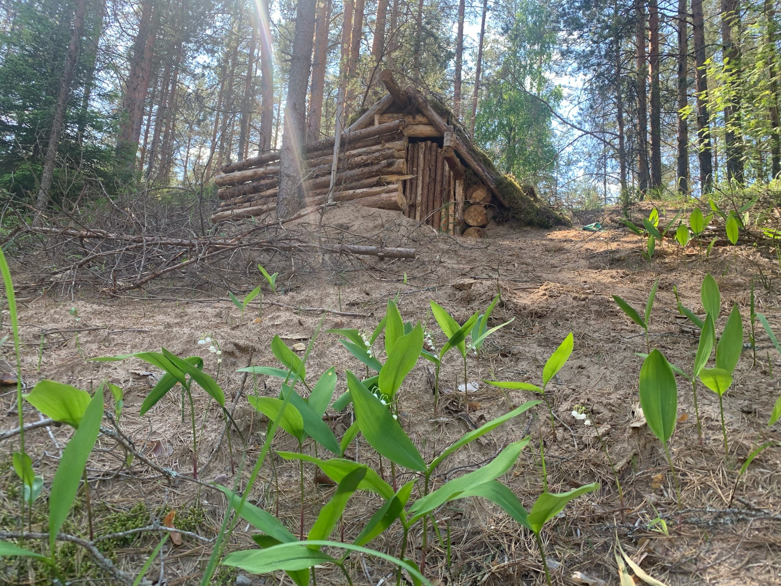 Привет, анон, я съездил в землянку. Пока меня не было, какой-то слабоумный слегка подраздрочил печь, зачем то спиздил уголь и пару кирпичей. От комаров нет отбоя, за то на крыше вырос ландыш. Неподалеку появились ямы. Может черные копатели копают что нибудь военное ждем деанон по месту боевых действий. Землянка выстояла уже практически год. Она пережила осенние дожди, зимний снег, весеннюю сырость и осталась сухой. Короче говоря, советую поесть говна всем умникам, писавшим, что она от влаги развалится и что ее затопит в низине. Короче говоря, памятник на века. В этом году, может, буду строить домик на дереве или что нибудь такое.