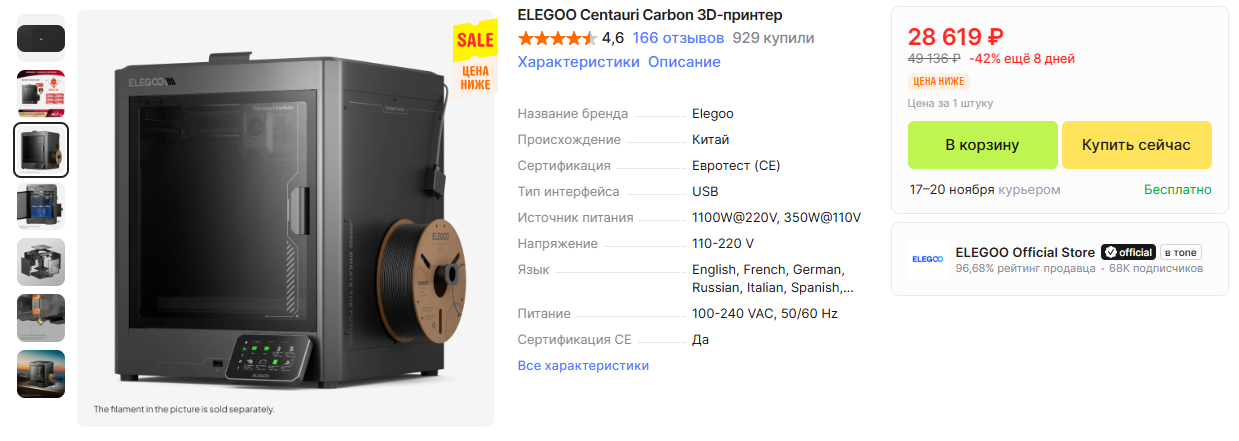 >>818559 Хотел по скидкам Flashforge Adventurer 5M взять, а в процессе оформления заказа оказалось, что меня забанили на Алиэкспрессе, лол (тупо не даёт сделать заказ). Теперь жду скидок на Бамбу лаб на WB. А1 сегодня по 25к был, но хочется мини, мало места в квартире.