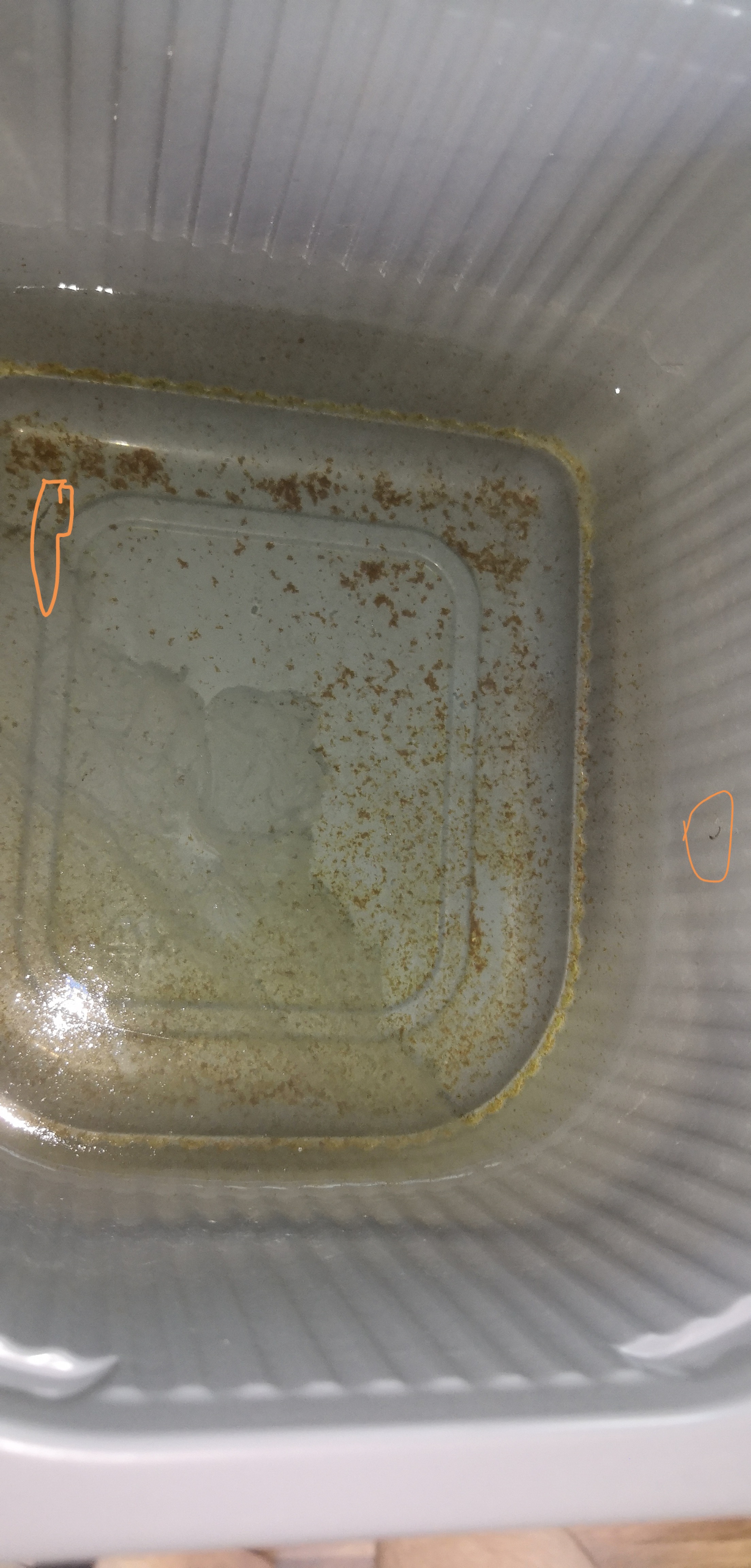 Я вспомнил, что недавно убирал оттуда мушку мёртвую, которая тоже траванулась солями железа.