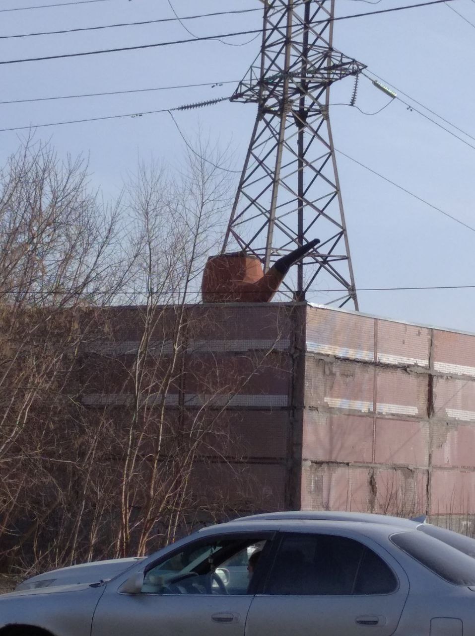 Сегодня поехал за вискарем в гиперленту на край жопы, иду значит вдоль дороги, и вдруг взор падает на постройку типа тронсформаторной подстанции, и на крыше вижу это: