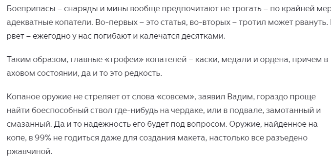 Я тут подумал... Типа были же сражения великой отечественной, на их месте чёто копали из оружия. А ныняшняя СВО тоже ведь очень мясная, тожё чё прикольное накопать можно будет когда всё уляжется.