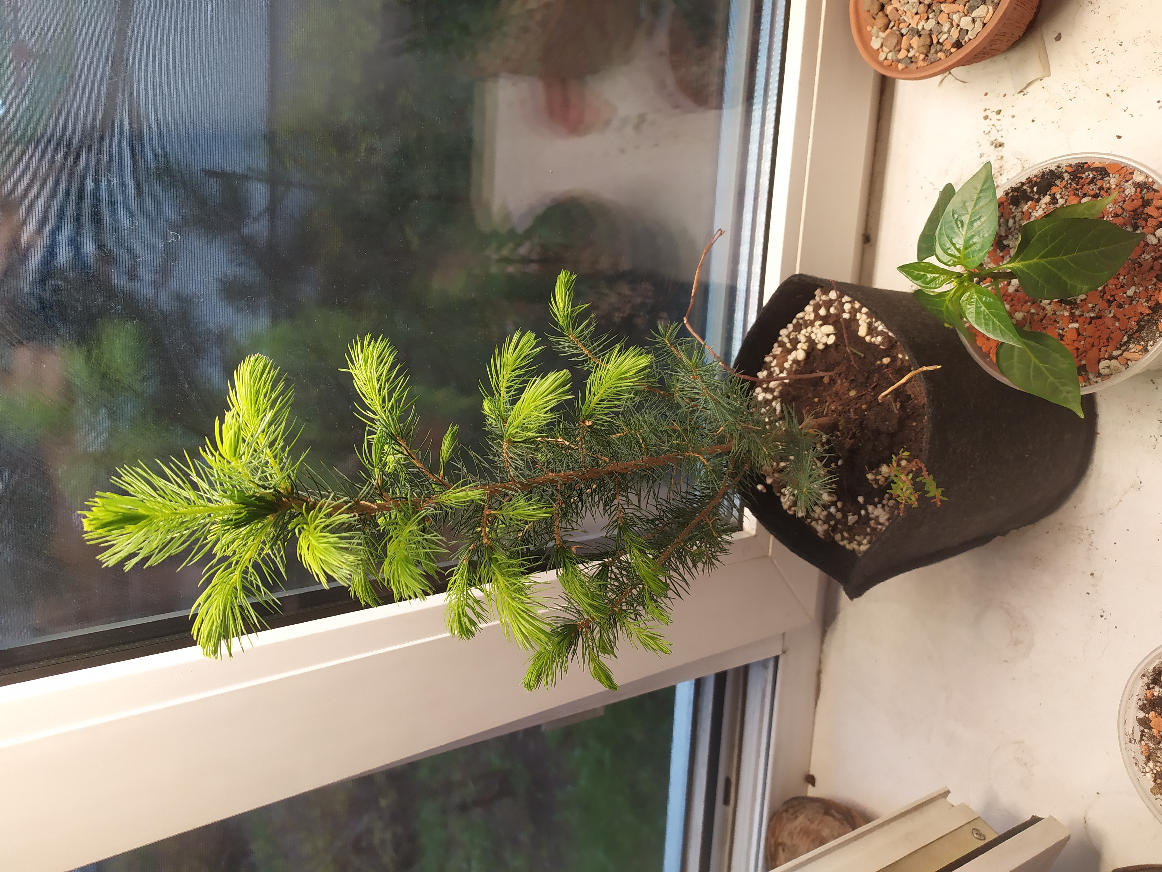 Мне в прошлом году отдали вот такую штуковину с первого пика. И посмотрите какой она стала за год! Прёт и прёт вверх. Надо ей ещё лески навязать, но хз даже как лучше. Если кто-то помнит я ёлки показывал, в этом году произошёл скажем так конфуз и они чуть не сдохли, но вроде успел их спасти и надеюсь они продолжат расти нормально. Правда обрезать пришлось их сильно.
