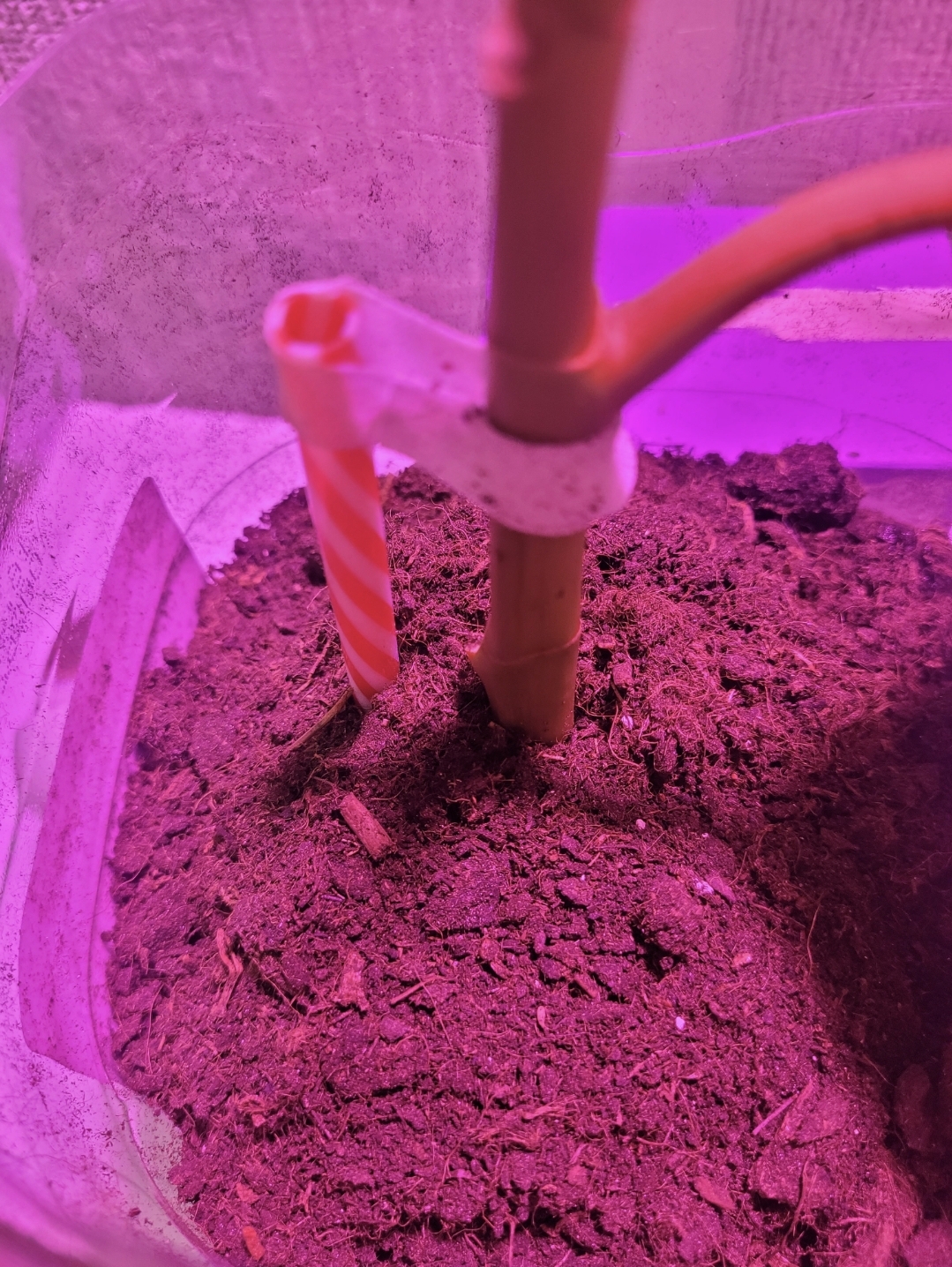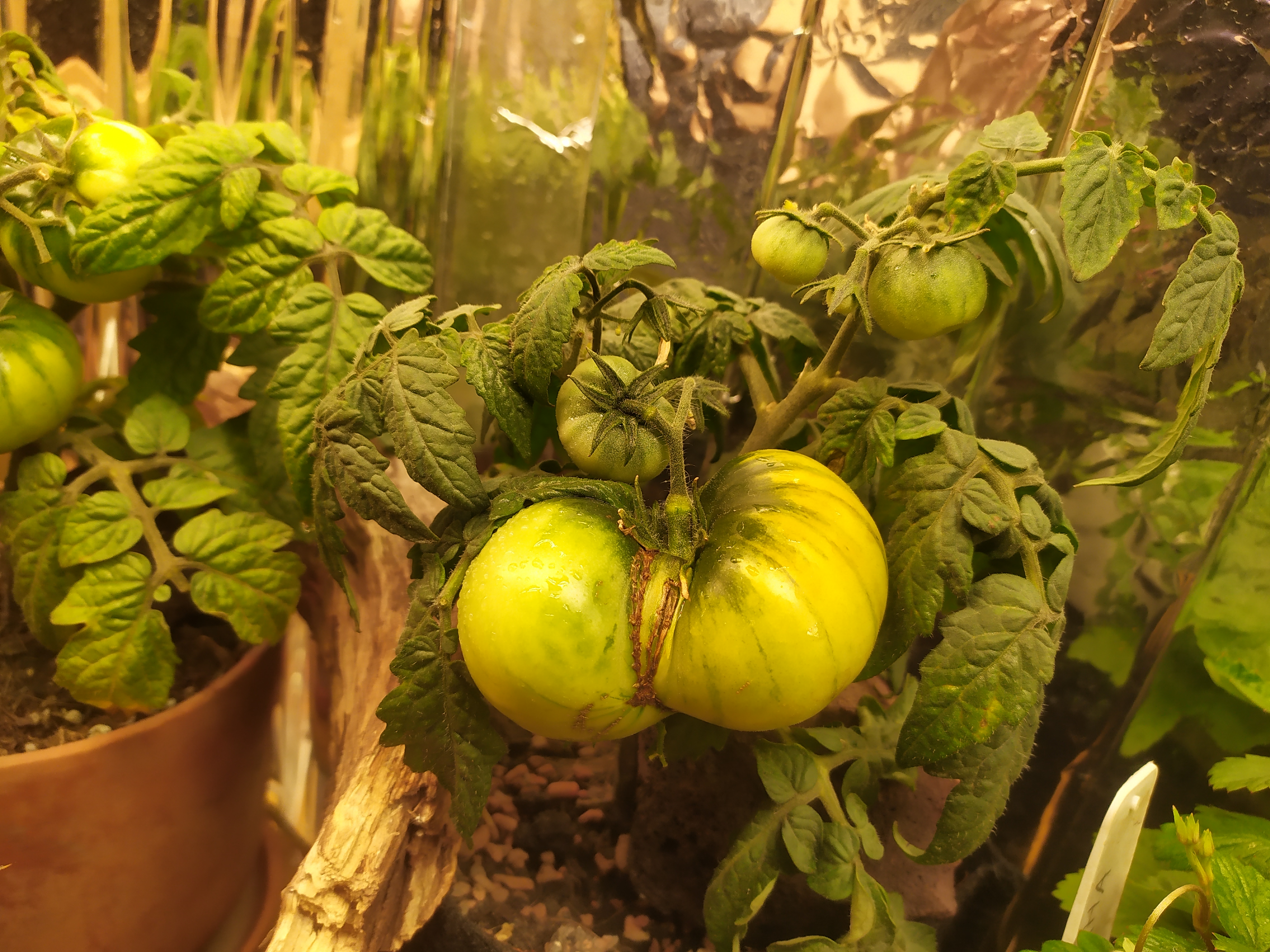 Еще хочется рассказать про своих супердетерминантов "30см в высоту". Посадил я их за 2-3 месяца до НГ, думаю, а вдруг уже к НГ будут помидорки, ну да. Купил лампы (ультраговно, как я теперь понимаю, на 9 и 12 ватт), помидорки хоть и не подохли, но вытягивались несусветно и выглядели соответствующе. Замотал их стеблями внутрь горшка, оставив верхушки, и землей досыпал. Думал, все, конечная, но рука не поднималась выбросить. А потом пришла весна - и внезапно мои доходяжки превратились в гигатоматы с толстенными стволами, уже 3 зайчатки помидорок есть, самая крупная где-то полсантиметра. В итоге, получается, с посадки до этого момента прошло 7-8 месяцев.