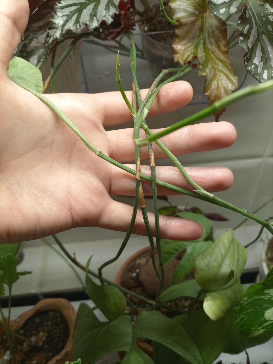 Как же меня продолжает изводить "эскелето". З листа лезут, все заебок, начинают разворачиваться, дыры норм, все идет норм. Но на последней стадии где-то 1/4 листа нихуя не разворачивается и бледноватая. И что же вы думали? Традиционный приход трипсов за свежей листвой/жратвой. Старую они прокусить ни на филах, ни на монстерах они у меня не могут, зато только вылезшие листья - пожалуйста. Залил мылом, залил перекисью. пара палок доктора/автары в грунт, срез всей хуйни, где они могли прятаться. В результате, думаю, что все 3 листа, если выживут, то лишатся части листовой пластины. И такая хуйня 8 из 10 раз. Раньше я резал весь лист, но понял, что так растению ещё хуже, ведь общая площадь озеленения страдает, то есть сил у растения не пребывает. По-прежнему ищу неубиваемое теневыносливое ампельное растение на полку над печкой. Что-то из лесных кактусов предпочтительно. Но сойдет и хойя (не карноза), или даже ароидные (что-то посмотрел на марбл квин и не вставило как-то). Рад вашим советам, цветаны! Короче, что-то не самое банальное, деревянное (пох на минимум света зимой и минимальную влажность), теневыносливое и растущее вниз.