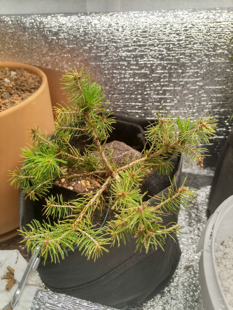 С ёлками походу всё норм, появляется новая хвоя, решил осенью обрезать по жесткому их, возможно получится что-то вменяемое сформировать, а не просто безобразие оставлять это.