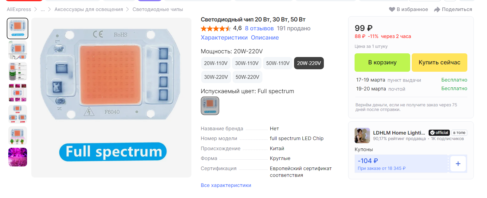 >но всегда есть очень просто вариант - лампочка ёмаё. Которую надо сверлить для сброса температуры с её драйвера, драйвер которой опять же выкручен так, чтоб диоды светили ярче и подохли скорее, т.е. выше их номинального напряжения. Сплошной наёб для гоев. Хотя, скажу, лампы Maxus хотя бы делают с алюминиевым патроном, пускай и покрытым пластиком. И колбу если с них снять- её можно обратно пристегнуть. Это во-первых. Во-вторых- габариты лампы. Лента- плоская хуйня, от которой провод пустил к бп, бп на таймер и спрятал. Т.ё. всесамые габаритные предметы уходят за пределы стеллажа/бокса, не подвергаясь нагреву и влаге. Или ты подразумеваешь что-то вроде этого >>794738 ?