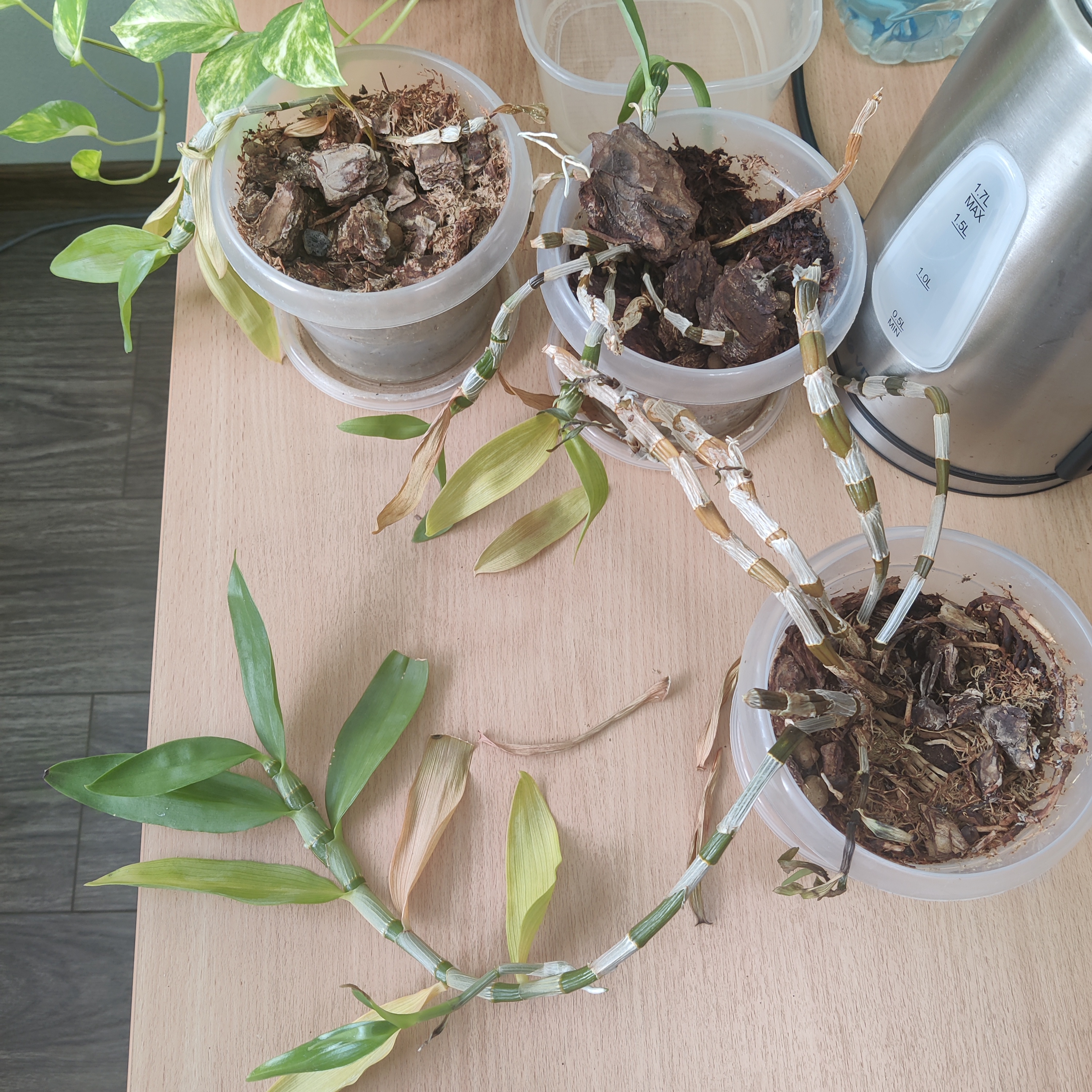 Кароч, в текущих парниковых условиях за пару недель растения отошли от стресса, больше не срут красным пигментом на листьях, растя их вновь зелёными. Проклюнулись из ствола новые корни или новые ответвления из старых корней. Реанимаха пока что думает, но она хотя бы стабильна. Вообще, крайне выносливые и живучие растения. Помню, забрал одну орхидею, которая 3 месяца в квартире стояла без полива - ну так, листики немного подвяли- но выжила.