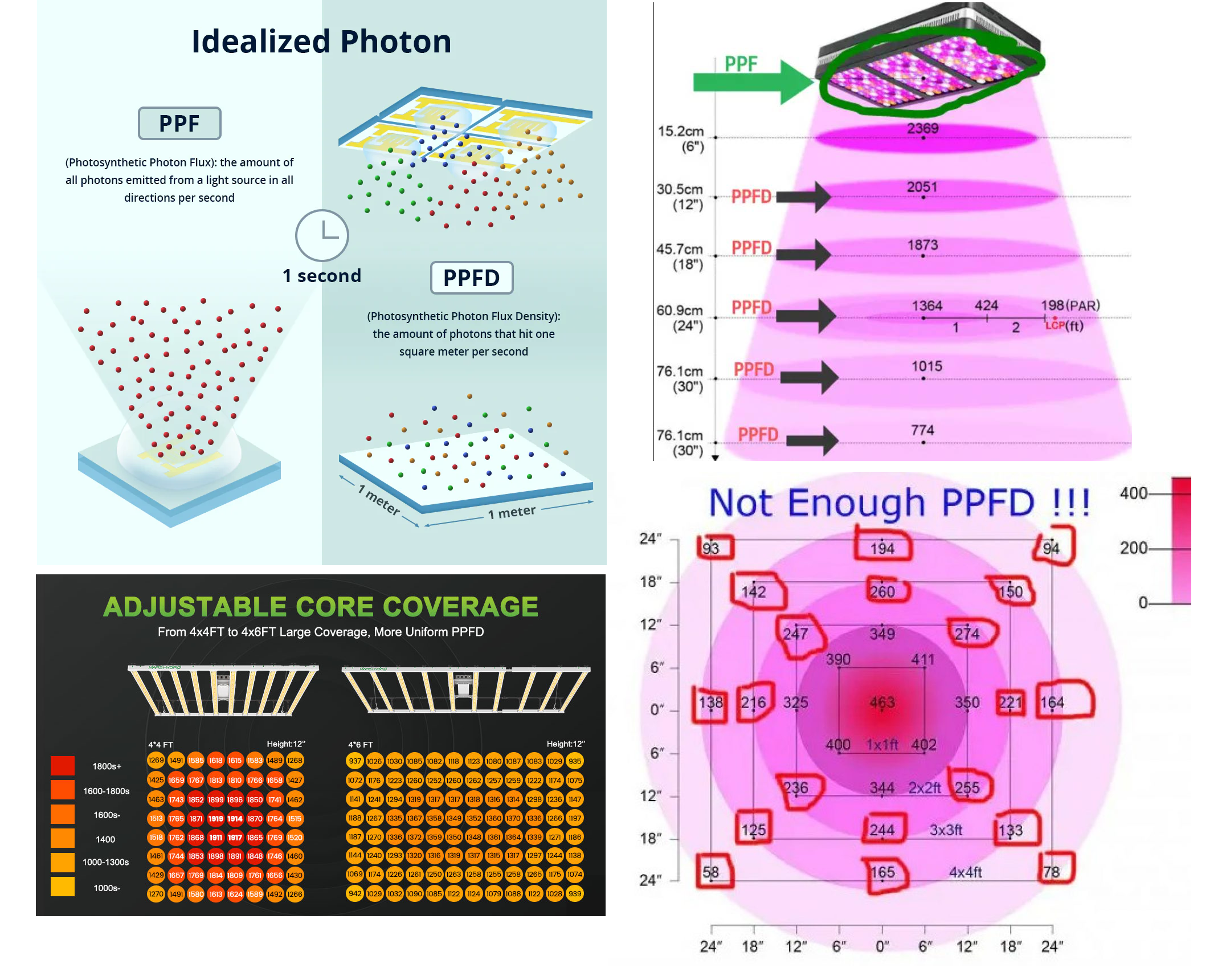 >>798599 >Т.е. над кем-то густо, над другими -пусто Ну ты бы хоть гроубокс свой описал для начала. А с отражающими стенами хоть направленный хоть какой - свет будет +- равномерным, с оговоркой что минимум на определённом расстоянии. На твоей пикче "нот энаф ппфд" в боксе с размерами 120х120, я вообще не понимаю на кой хуй она так обозначена, ведь в центре всего 400, тогда как на верхней пикче указано что лампа может минимум 770 выдавать на большой высоте. Хуета пикча короче лол) >фитолампами е27 4,5 вата - но там их использовали больше от безысходности на стеллажах Во-первых, аргументация "я видел" - сразу нахуй. Во-вторых, 4.5 "фито" параши это по дефолту безысходность. Не могут жалкие 4.5ватта что-то нормально осветить, так что пример вообще ни к чему > метод руки Сам придумал? Любые попытки померить свет "на глаз" это тупая затея. Наши глаза это противоположность. Ну и звучит тоже глупо. В нормальном боксе хоть на 15 хоть на 5 хоть на 30см от лампы тень будет супер слабой из-за переотражений. Но это если у тебя стены белые. Поэтому если хочешь мягкий равномерный свет то крась стены белой краской > это я в курсе А нахуя спрашивал? Этж был твой основной вопрос >Так-то очевидно А нахуя спрашивал? Считать умеешь, формулы знаешь, эффективность известна > Где об этом почитать/правильно запросить? Бля прога есть, там прям как в блендере указываешь свой кастомный источник света со всеми параметрами, строишь бокс, стенки и прочее, и он тебе просимулирует световое пятно с любого расстояния от лампы. Но я название только позже найду >Не очень понял, нарисуй, пожалуйста. Даташит любого интересующего тебя диода посмотри, там все диаграммы есть Вот пикрил, попробуй пойми. Красные линии это расстояние между отдельными светильниками. Соответственно свет падающий вниз от одного диода уже полностью зайдёт на территорию света другого диода. Ну для дела эта информация конечно не очень полезная, ну лол >одна лампа включается тачем Чё? Вырви хуйню эту и запитай напрямую >23 ват эсл Выкинь бяку >https://web.archive.org/web/20210622043010/https://highdesertorchids.com/blogs/artificiallightgrowing/artificial-lighting-for-orchids-and-tropical-plants Бля хоть один нашёл инфу об этом, а то гугл чёто совсем дрянь выдаёт. Молодцы ребята, хорошая бамажка
