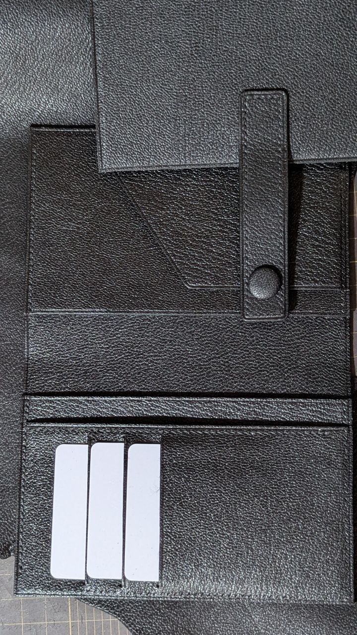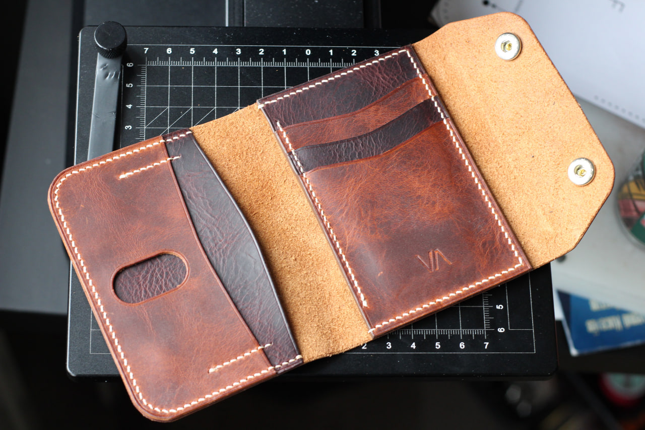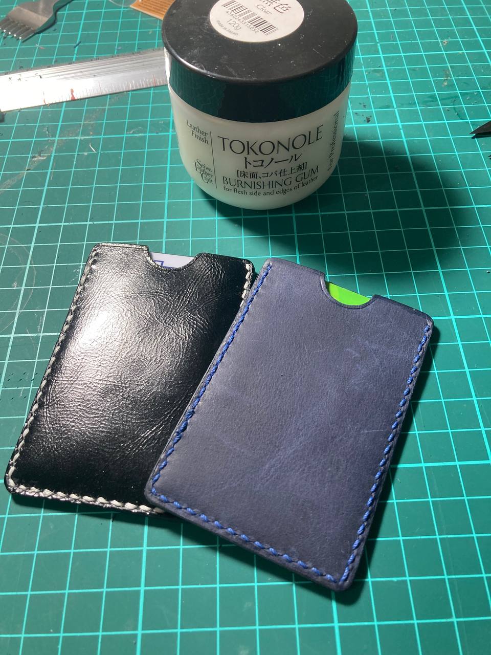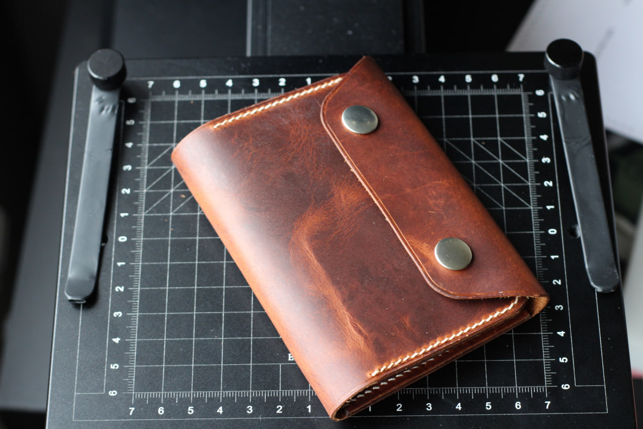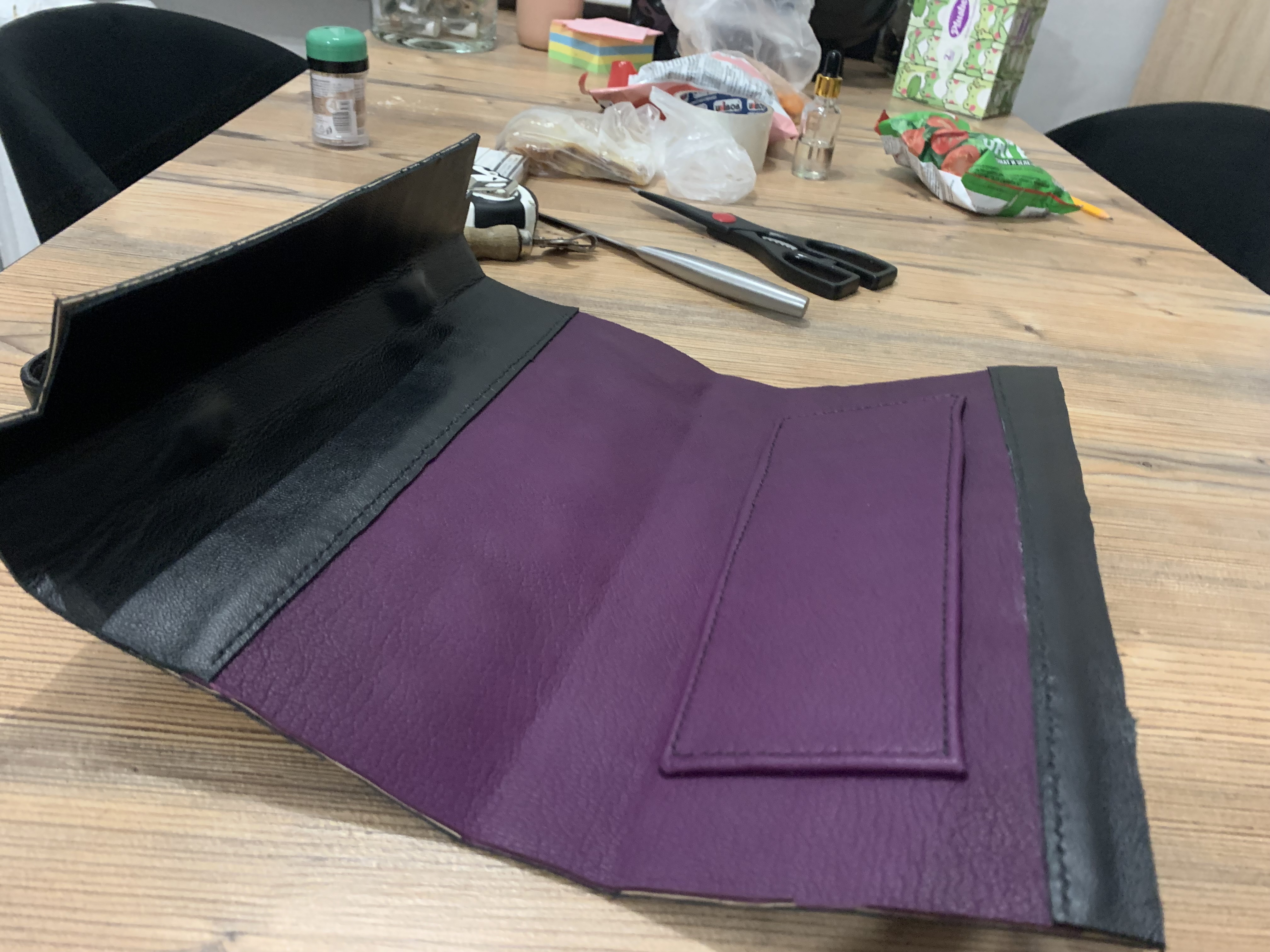 3. Возьмем тот же кардхолдер как базовое изделие. Вы сначала вырезаете все элементы по четким размерам и потом их пробиваете, склеиваете, собираете и готово. Или вы всё пробиваете, склеиваете, сшиваете и только потом отрезаете все лишнее с отступом вокруг шва? Не понимаю как лучше, чтобы было меньше косяков.