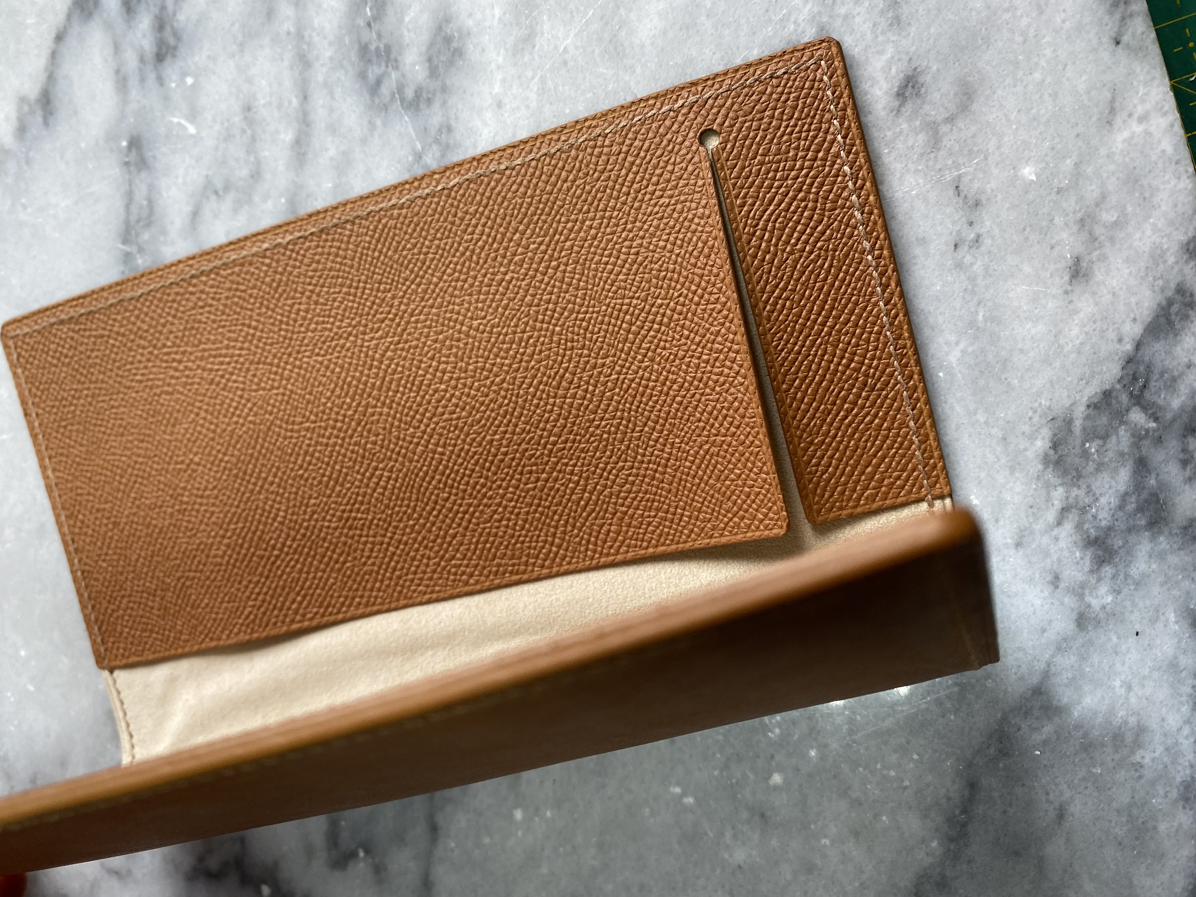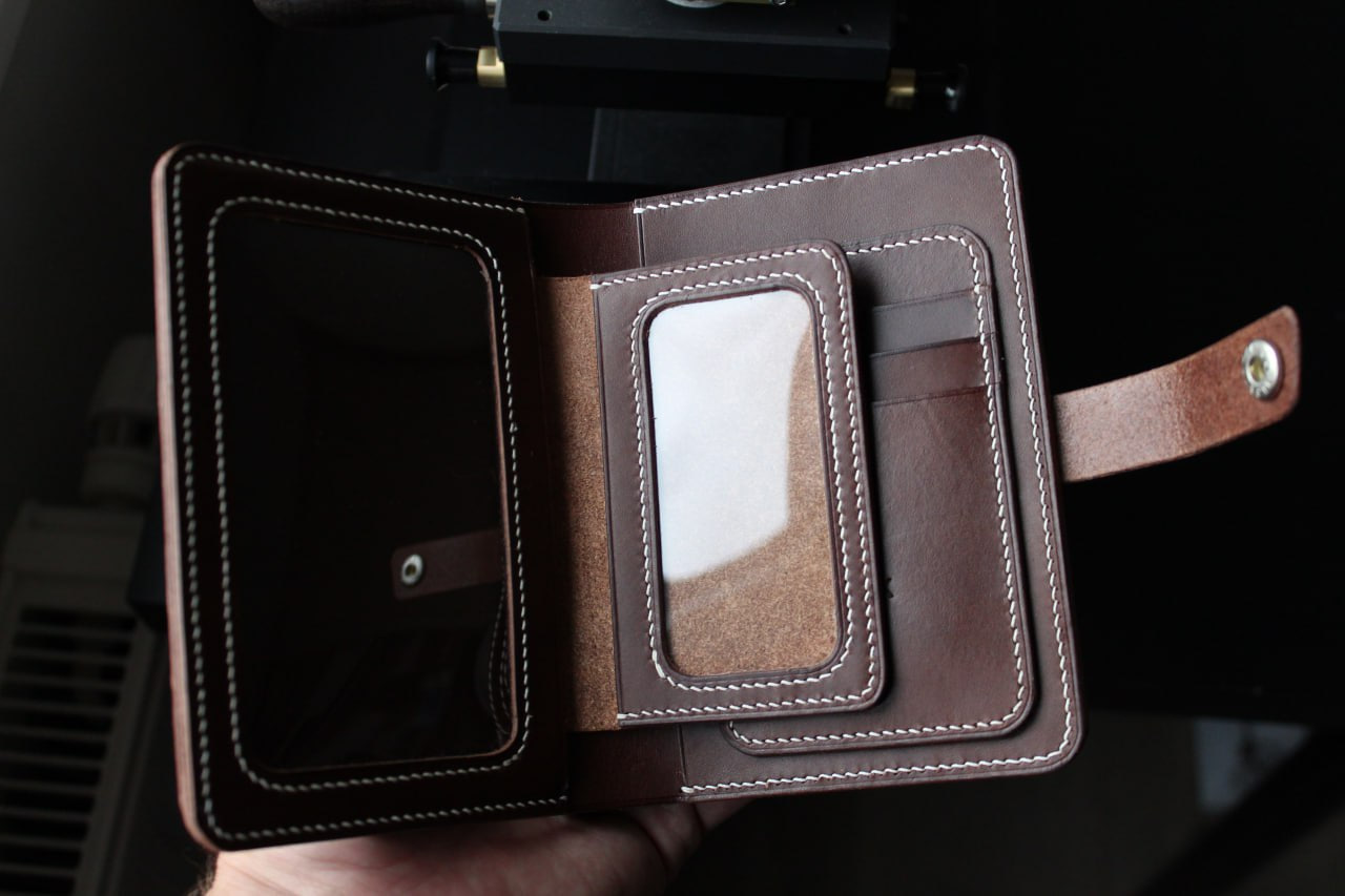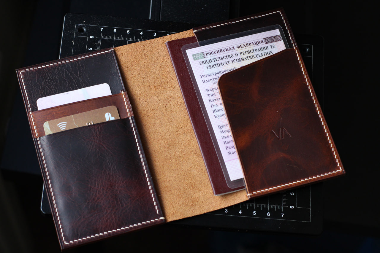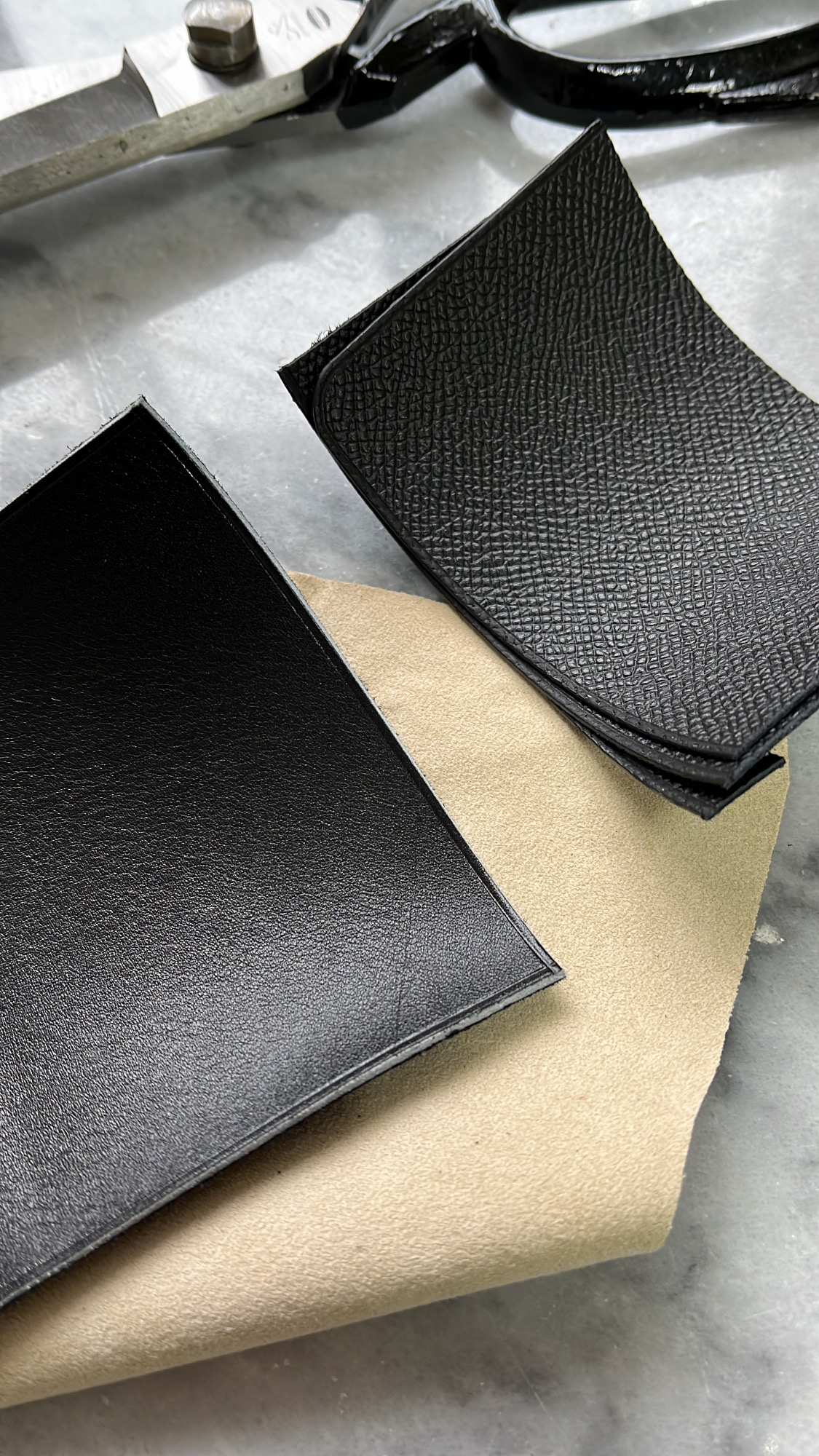 3. Возьмем тот же кардхолдер как базовое изделие. Вы сначала вырезаете все элементы по четким размерам и потом их пробиваете, склеиваете, собираете и готово. Или вы всё пробиваете, склеиваете, сшиваете и только потом отрезаете все лишнее с отступом вокруг шва? Не понимаю как лучше, чтобы было меньше косяков.