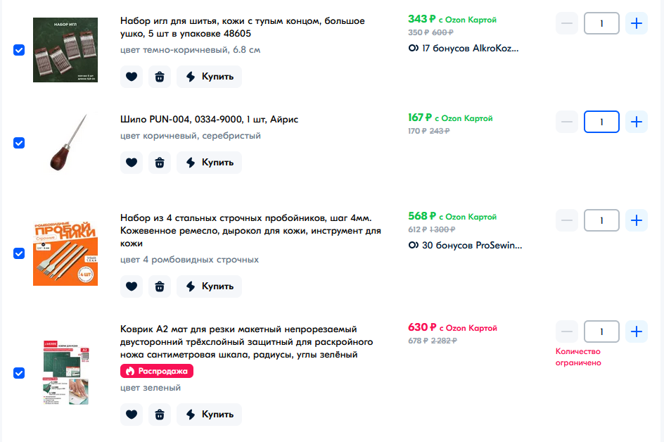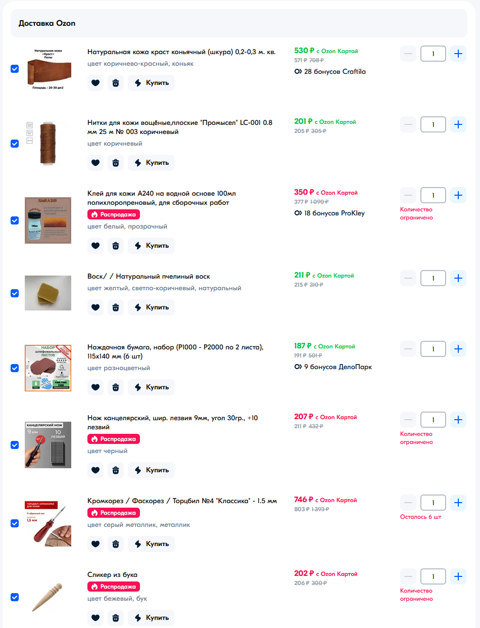 Там были лоты на вес из, например, разных кож — всех выделок и фасонов в одном мешке. То ли loskut62, то ли ещё как-то так звался. Хотя, возможно, это они и есть теперь.