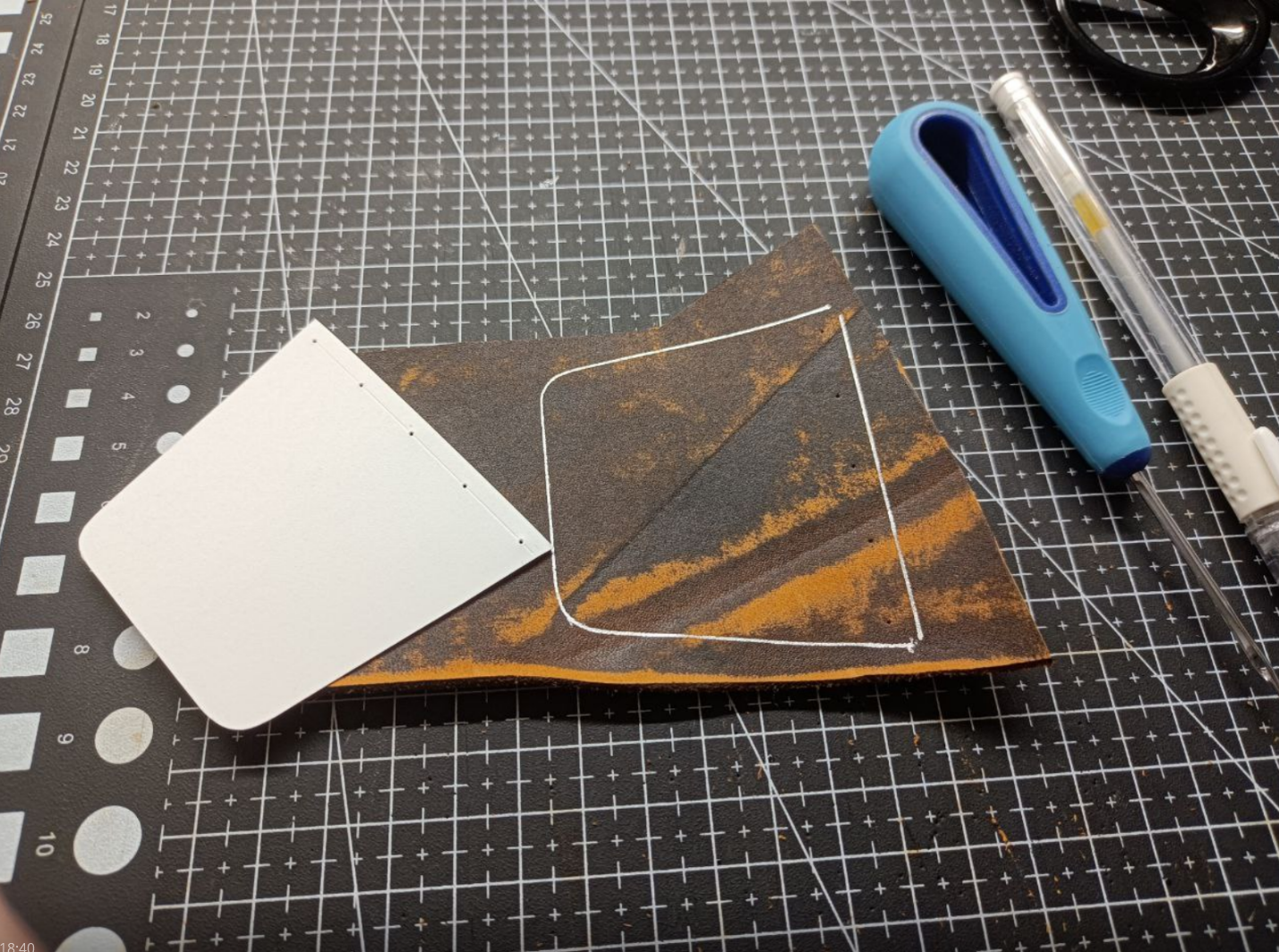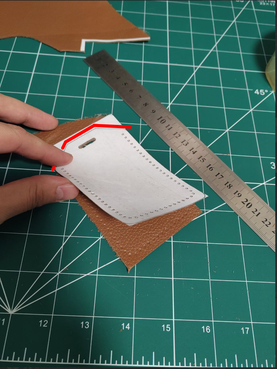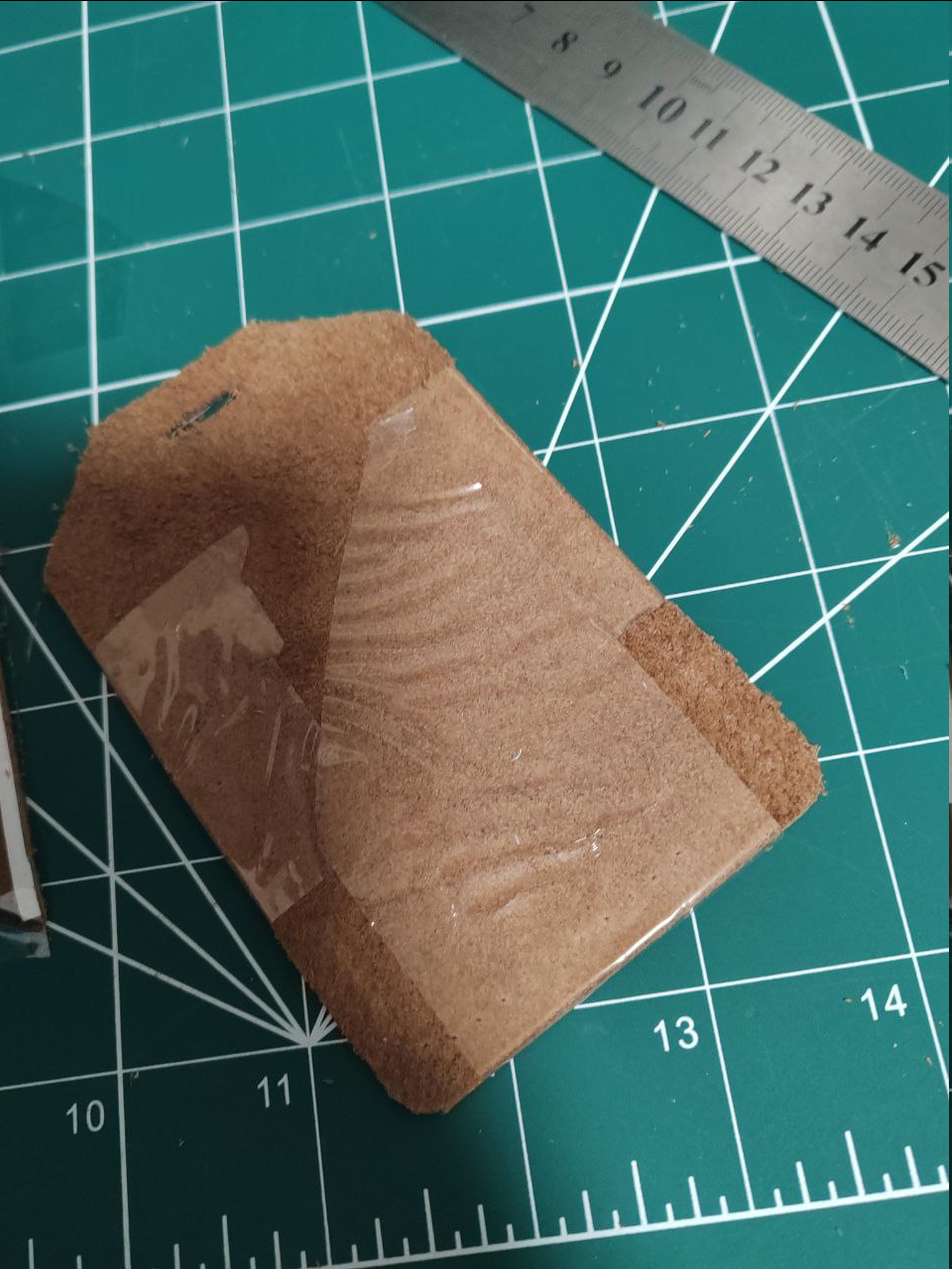 >>807921 После того, как я вырезал кожаные детали, я беру оставшуюся бумажную выкройку, убавляю её на два миллиметра с каждой стороны и по ней вырезаю пластик. Аккуратно его ставлю на место. После сборки, когда я обрезаю края готового изделия, запаса хватает на то, чтобы край плёнки остался внутри.