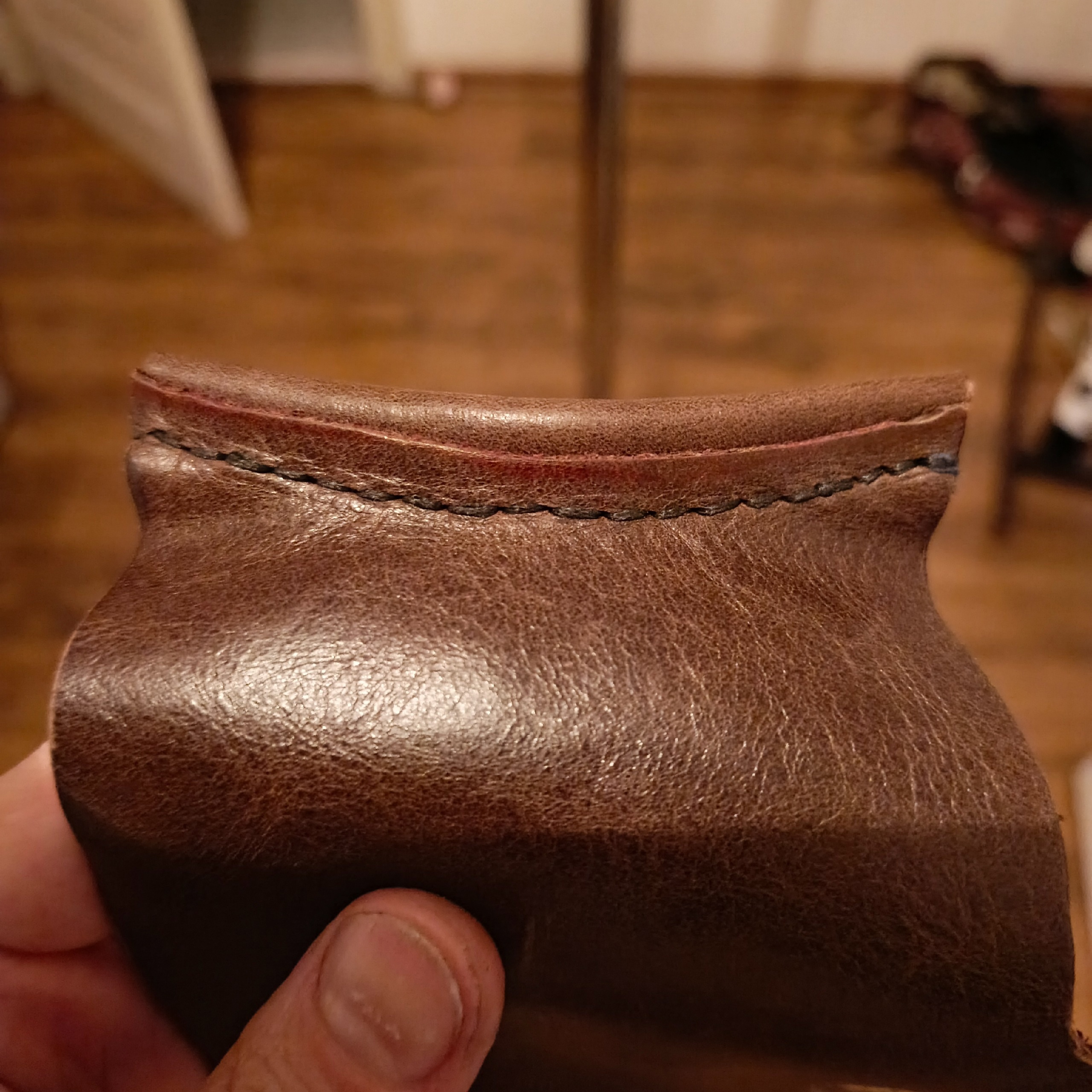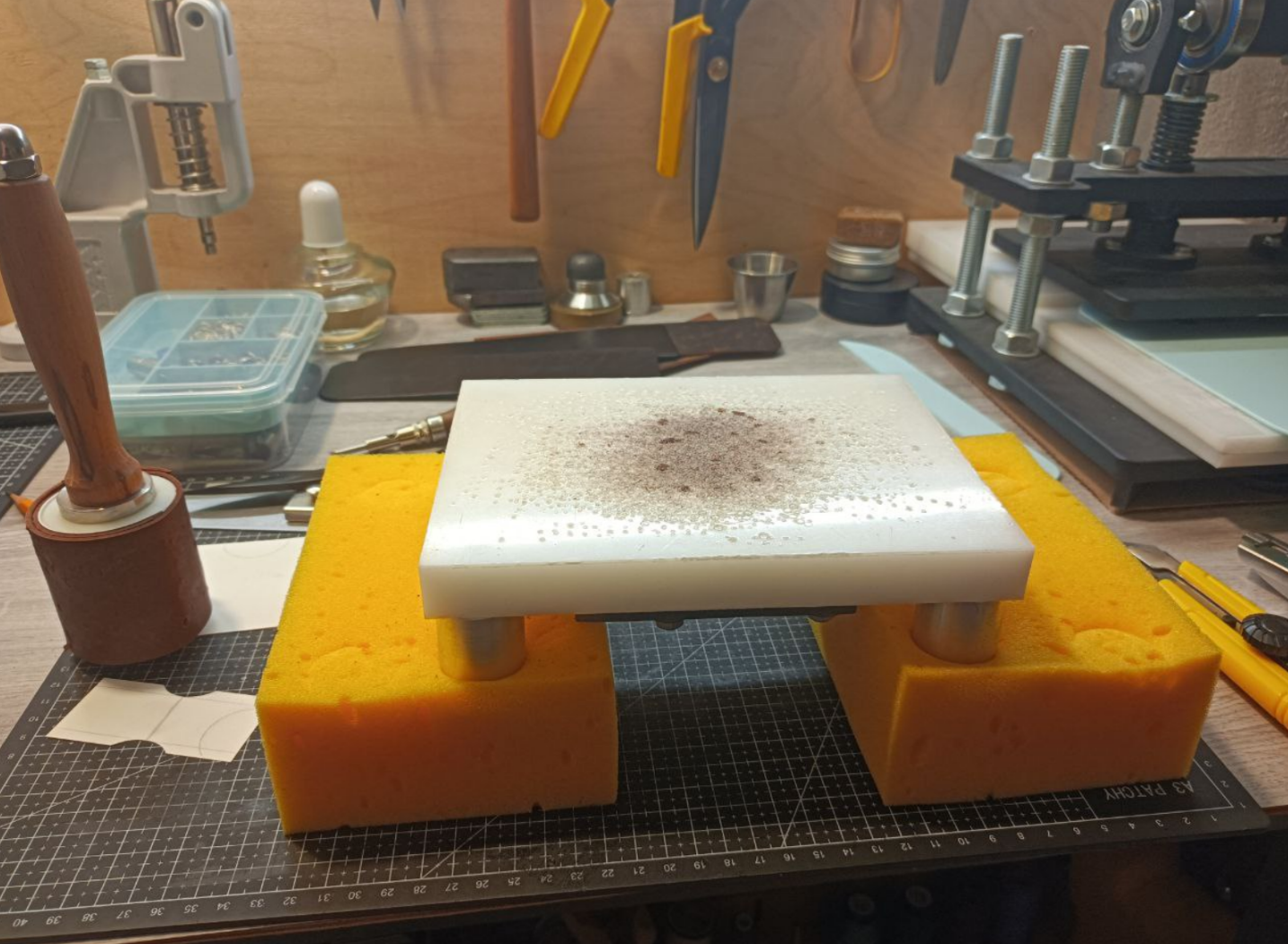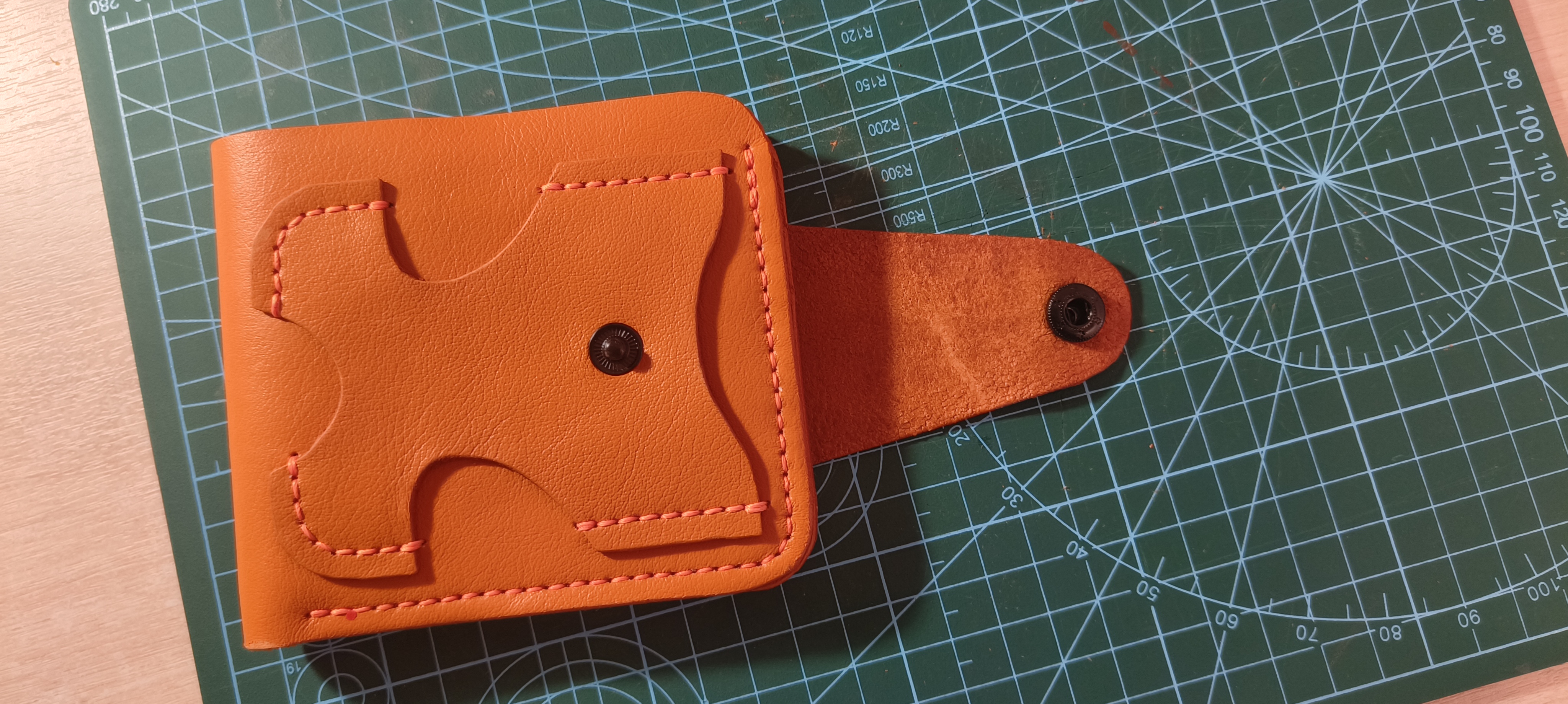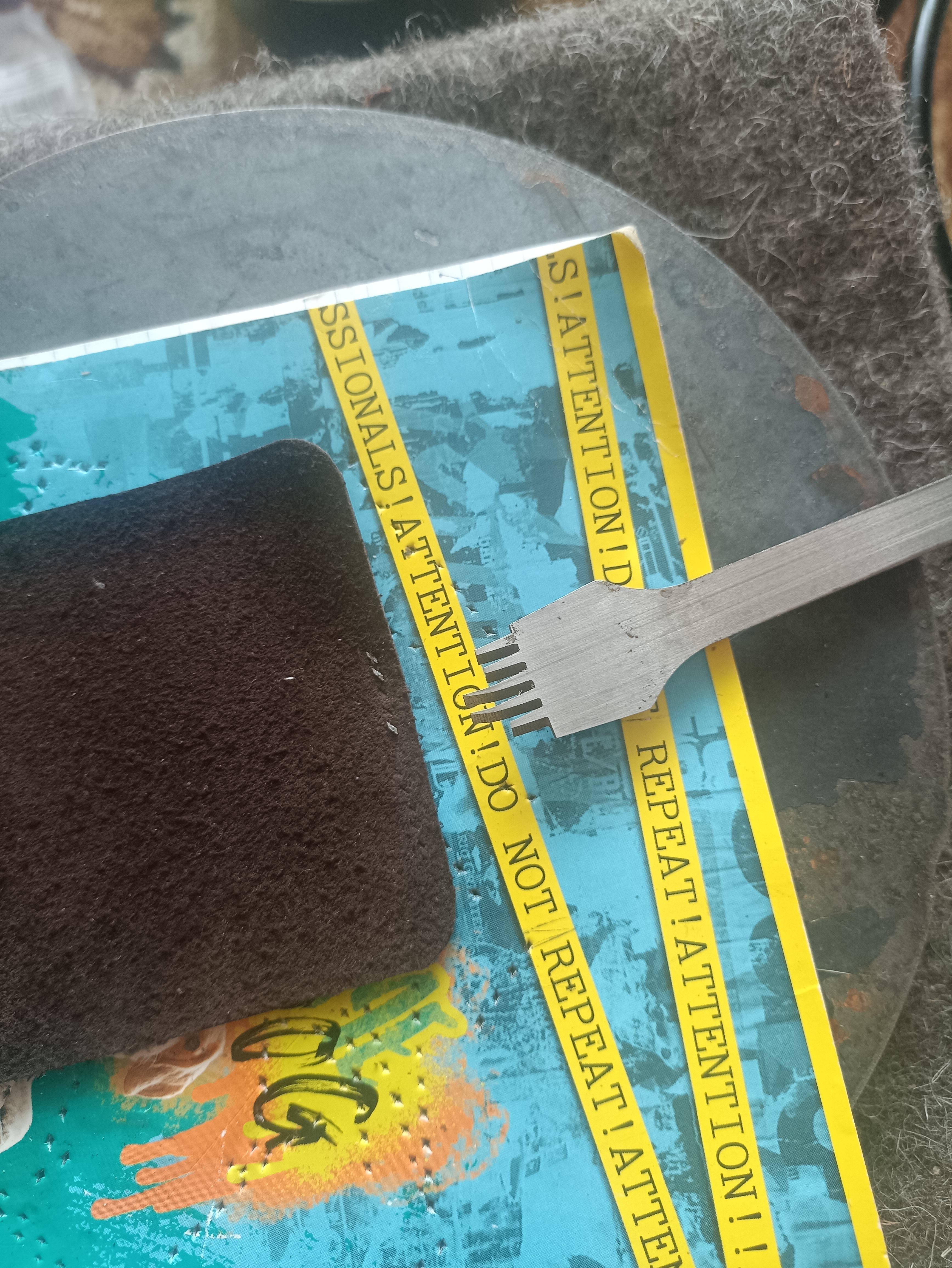 Вкатился на полшишки в шорное дело, начал делать кошелечек https://www.youtube.com/watch?v=WWhkSl0_EfE На то, чтобы наклеить, пробить, вырезать и чутка обработать бормашинкой урезы ушло 4 часа. Если понравится резельтат - покажу в тред. Но это ближе к выходным. Если не понравится - то просто напишу. Кстати, в паттерне походу проеб с двумя дырками, пикрелейтед. Это если кто захочет повторить. Завтра с дырками разберусь и точно напишу, что там.