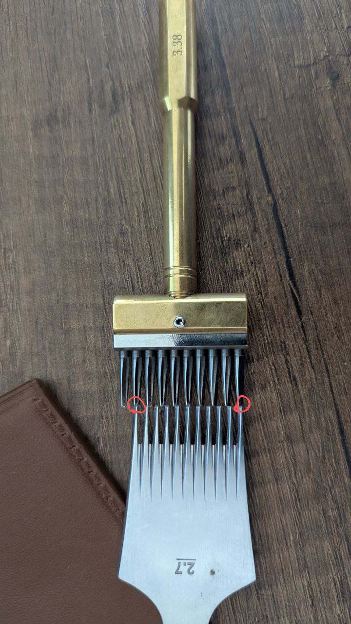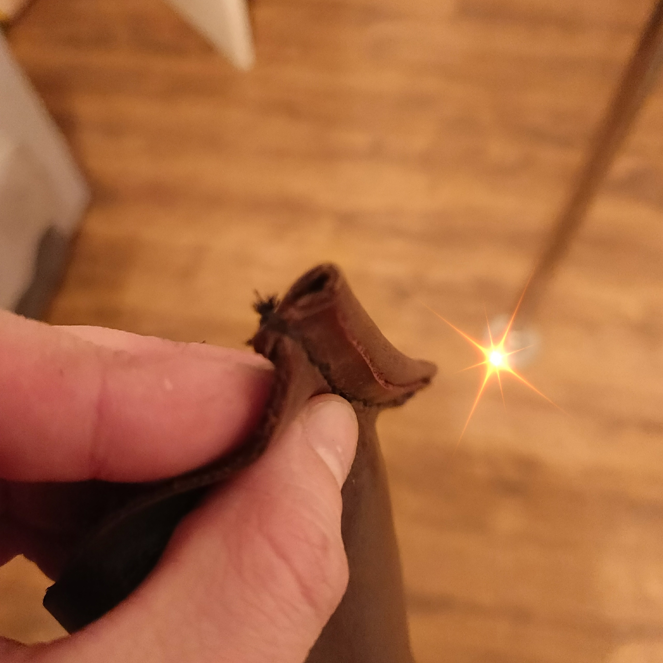 Иглой какого диаметра шьете французские дырки с шагом 3.85 мм и нить 0.45 мм? Алсо, обмазывал урезы токонолоаналогом (какой-то токовакс), и он немного попал на лицевую сторону кожи. Я так понимаю, это воски, и его можно убрать, нагрев место протекания? Или как его вообще убрать?