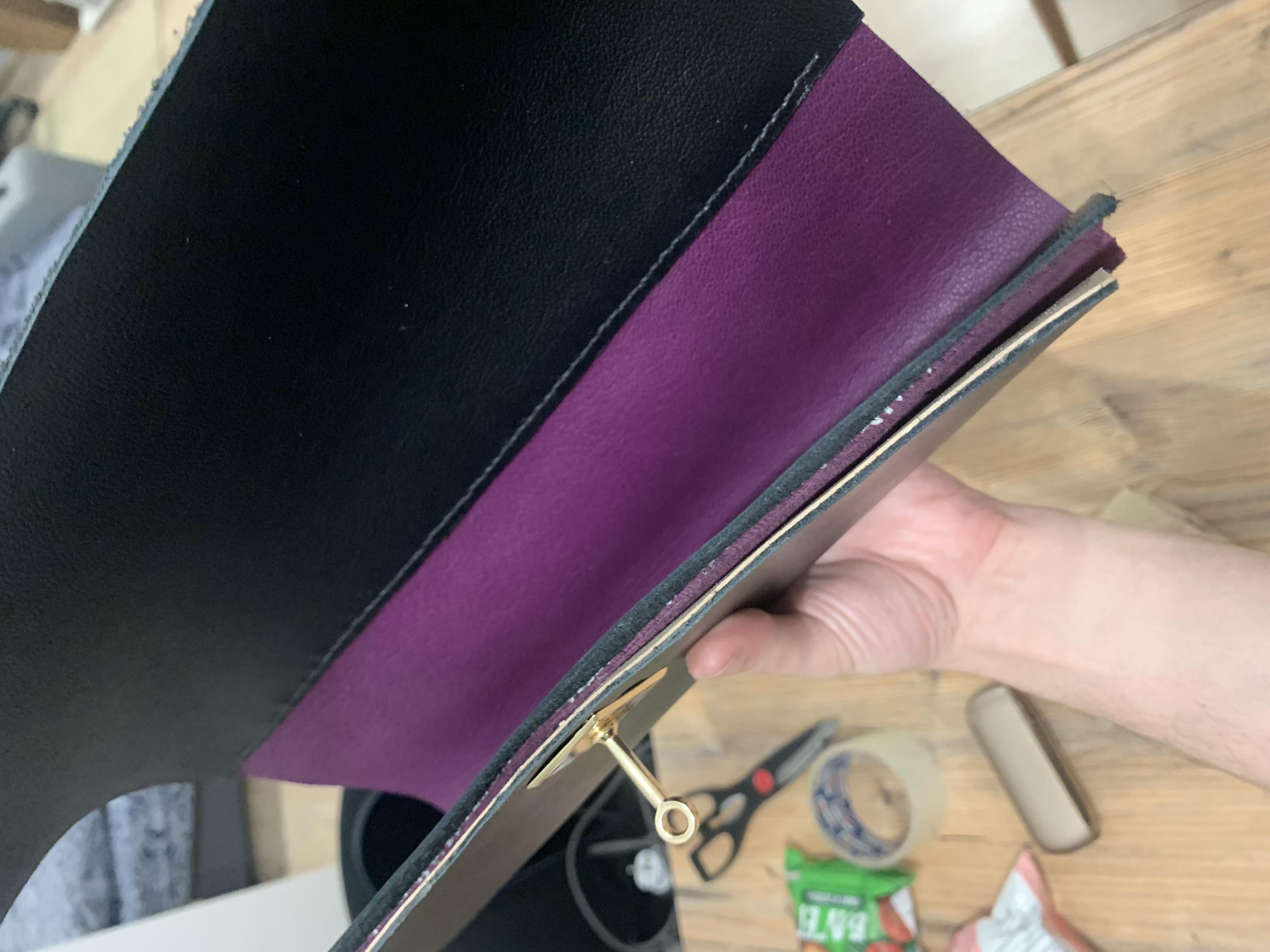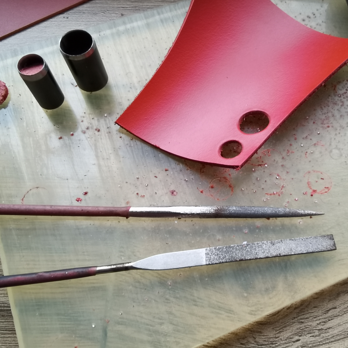 3) По-разному. Обычно лицевую часть делаю по выкройке с конечными размерами, а обратную часть с припуском 5мм и потом отрезаю. Пробивать всегда лучше послойно, особенно если итоговый край толстый.