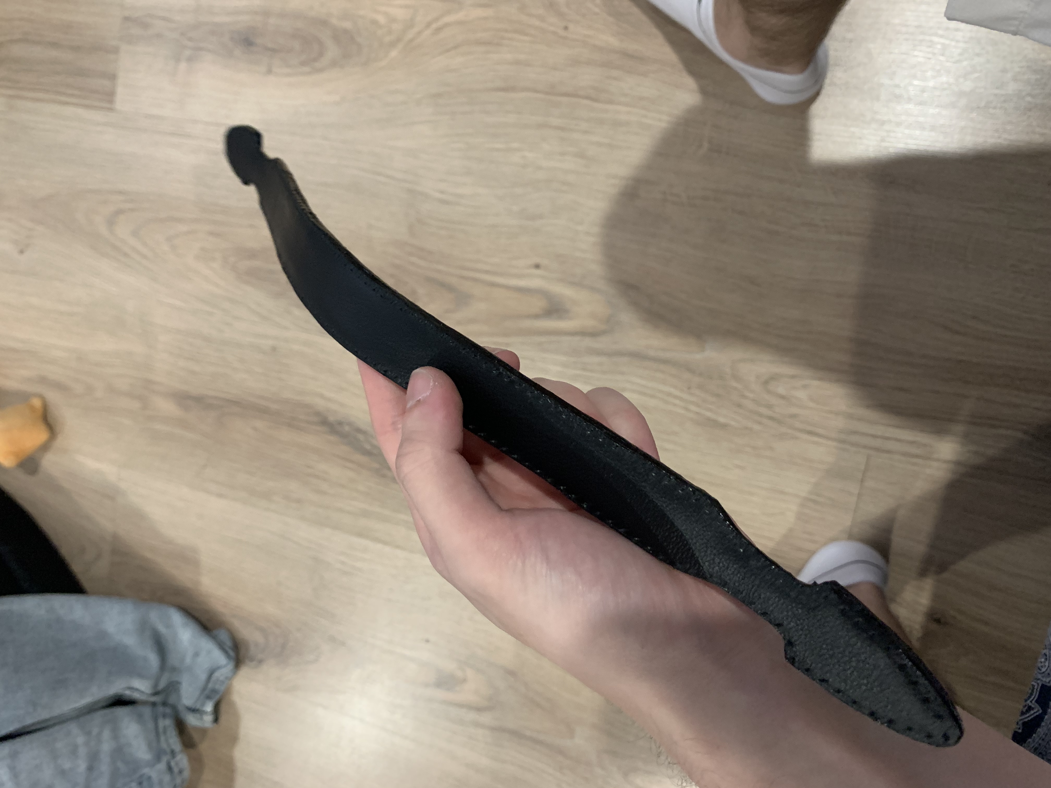 >>781227 На тот момент у меня были: строчные пробойники с озона, нить, обычные иголки, дисковый ножне рекомендую, лучше сразу нормальный трапецевидный взять, торцбил, токоноля/сликер. Ну и да: разметить, отрезать, снять кромки, пробить, сшить, зализать. Клеить до сих пор так и не начал.