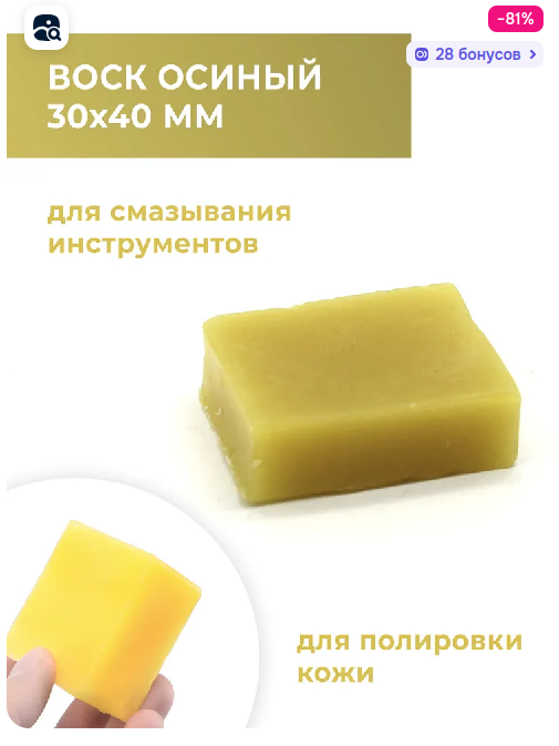 >>807386 Ну для меня обычный воск и есть пчелиный. Но если ты имеешь в виду парафин, то он хуже впитывается в кожу, оставляет налёт. Если у тебя колхоз-стайл изделия, то мб будет норм.