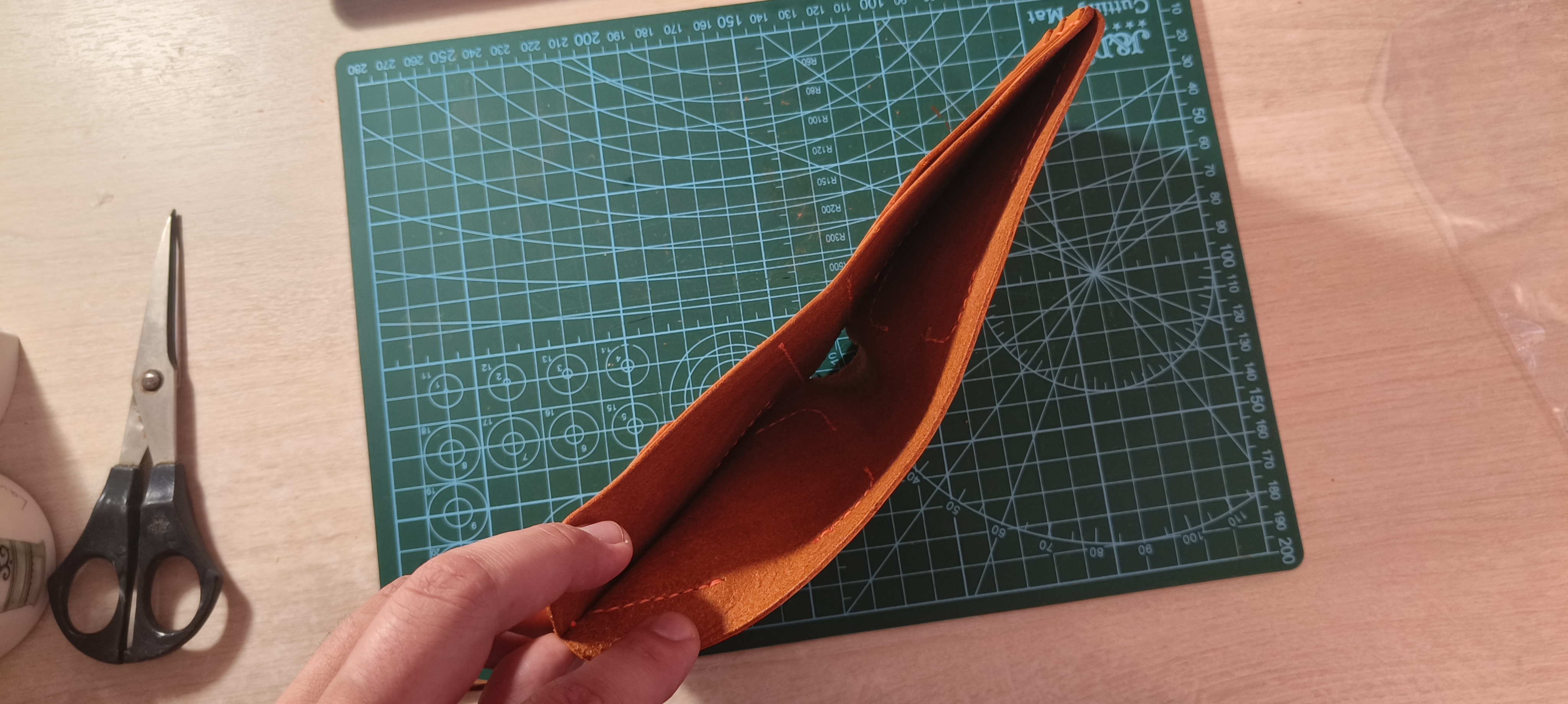 >>785221 Обычно самая тонкая кожа, которую используют для такого размера изделий - 0.5мм. Но она лежит в 2 слоя - лицо и подклад, так что минимальная толщина 1 детали - 1мм.