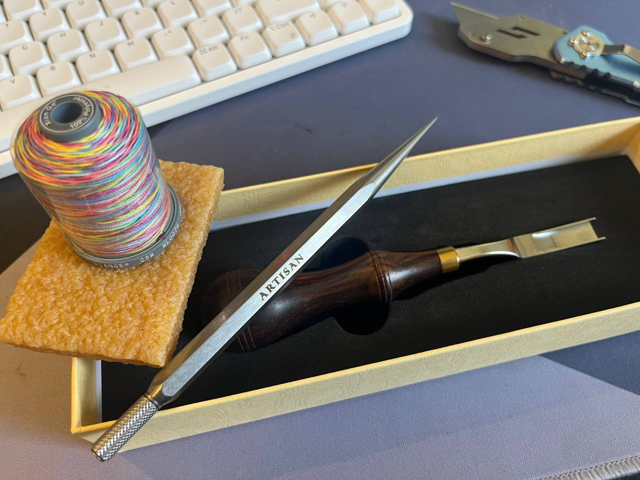 А потом отдельным заказом купил шорник для ремней длинный и еще что-то по мелочи и мне второй мелкий шорник как на пике выше докинули в подарок. С тех пор он у меня в ящике пылится, все никак на барахолку не соберусь выложить.