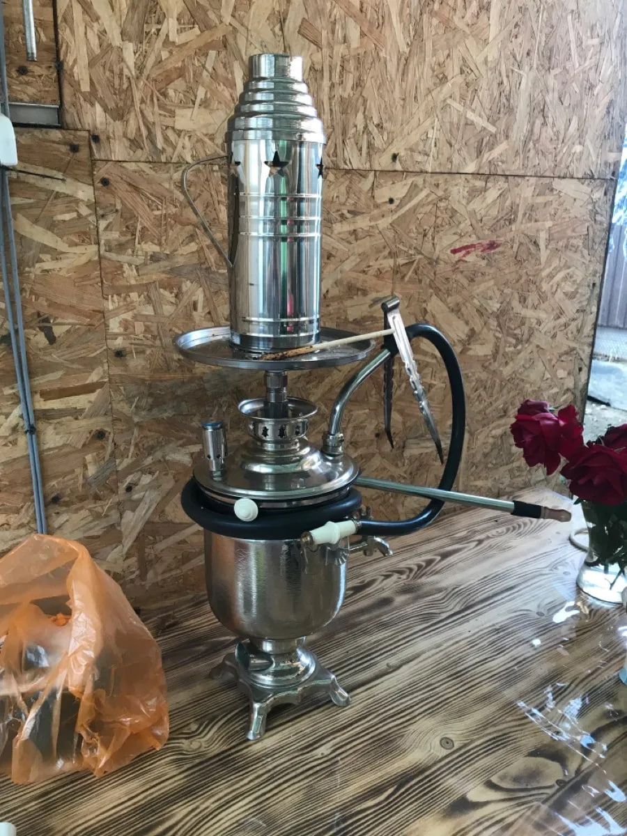 по производителям табака не получилось выделить какого-то лидера на каждый день, потому что для меня всё плюс-минус сладенький дымок. хуёвый из меня гурман. запомнился только киндер, его я больше никогда не буду брать. в качестве мемасика приложу необычный кальян который я увидел пока выбирал колпак.