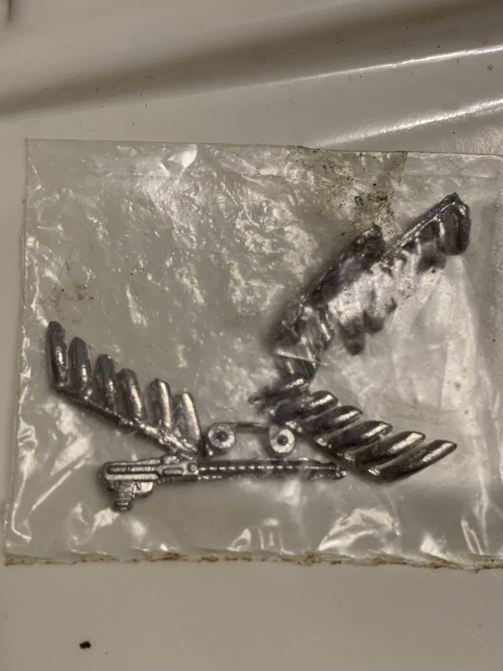 Как запаковать хлипкую коробку с литниками, чтоб она доехала в целости через все возможные невзгоды почты? Коробку обернуть в пупырку, запихать в коробку побольше и забить пустоту пенопластом?