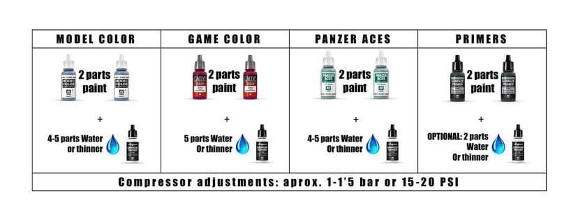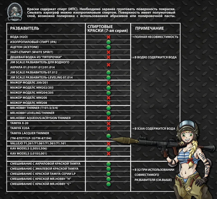 >>785917 (OP) Дарова, я к вам из вахача, частично в каких-то целях перехожу на спиртовые краски типо тамия и сюда, как более часто использующим такое зашел. Короч, на сколько максимум можно разбавлять и что будет при очень сильном разбавлении. По аэр канеш родным разбавителем от тамии канеш. Также, спиртовые краски обычно в стекле, если сразу разбавить как надо и перелить в более большую емкость с дозатором, но пластик че будет?