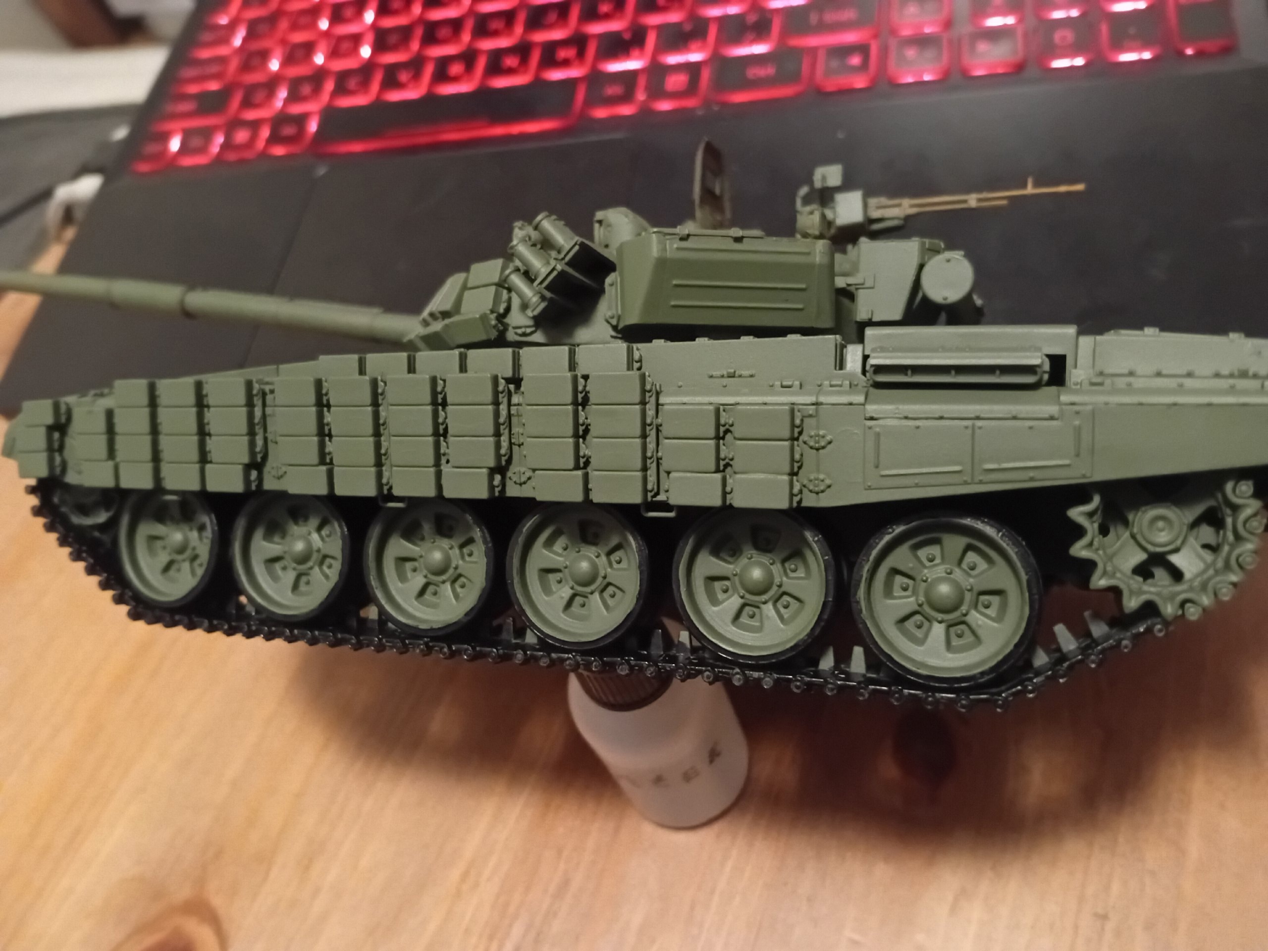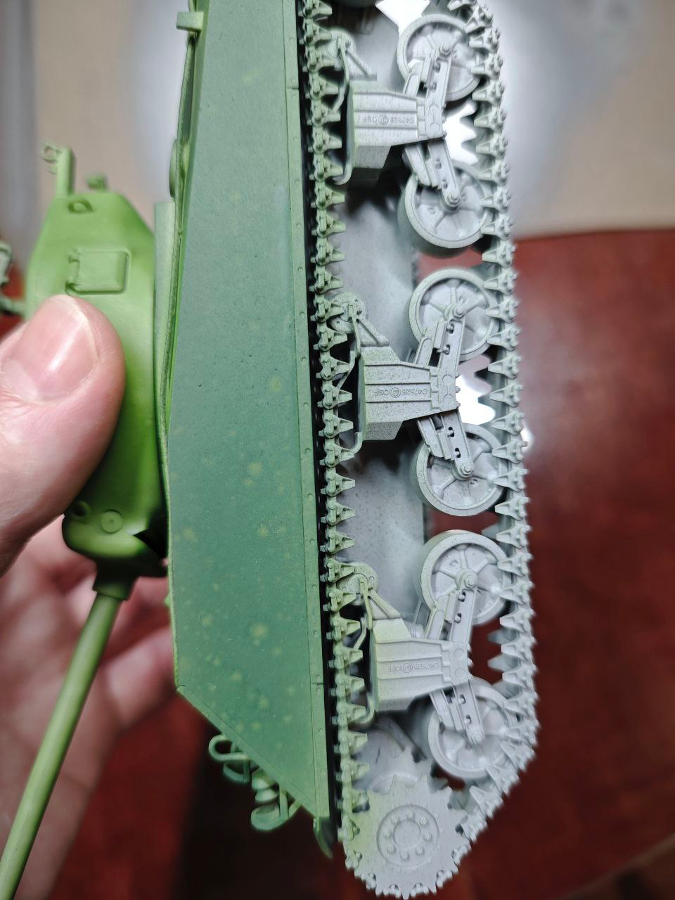 >>785924 на ванну танка наживляют без приклеивания катки и собирают на них гусеницу, после снимают гусеницу с катками, вытрягивают катки и всё окрашивают, после вставляют в гусеницу катки и надевают эту конструкцию на ванну уже с клеем